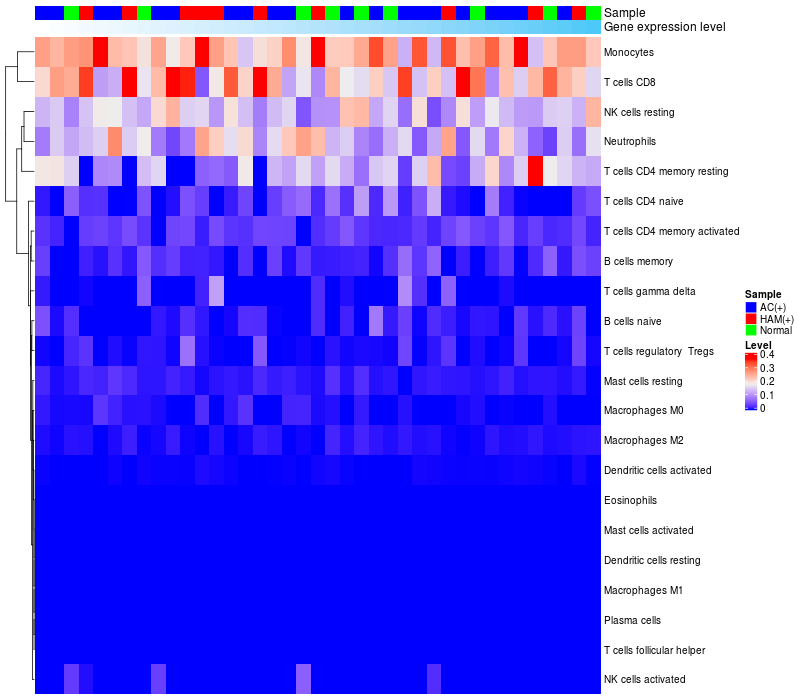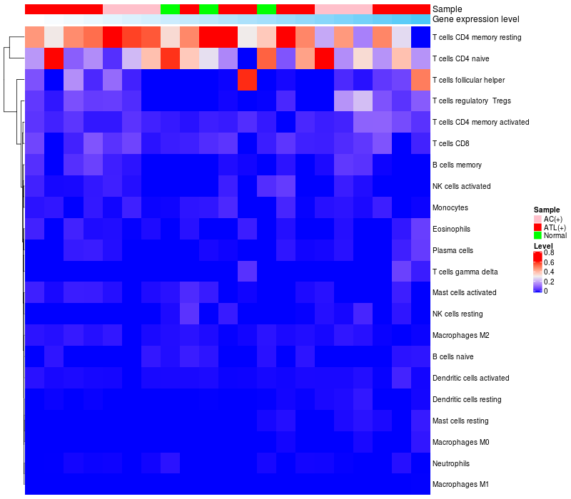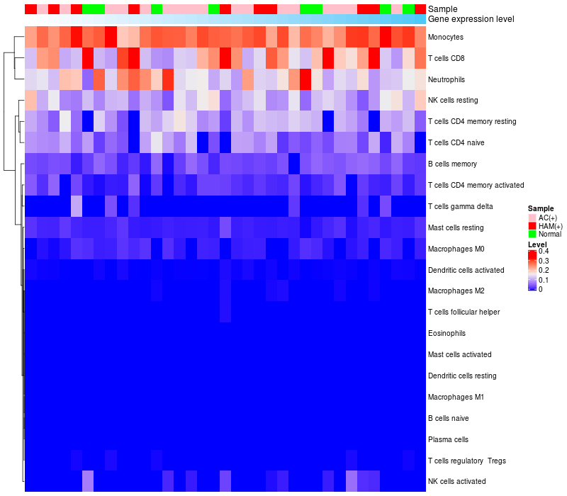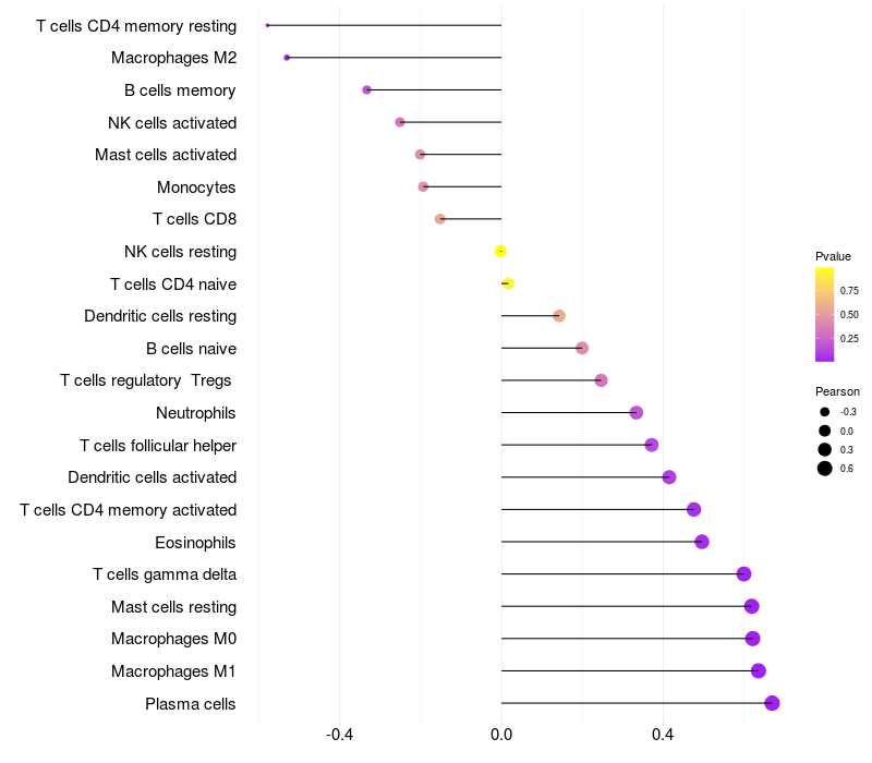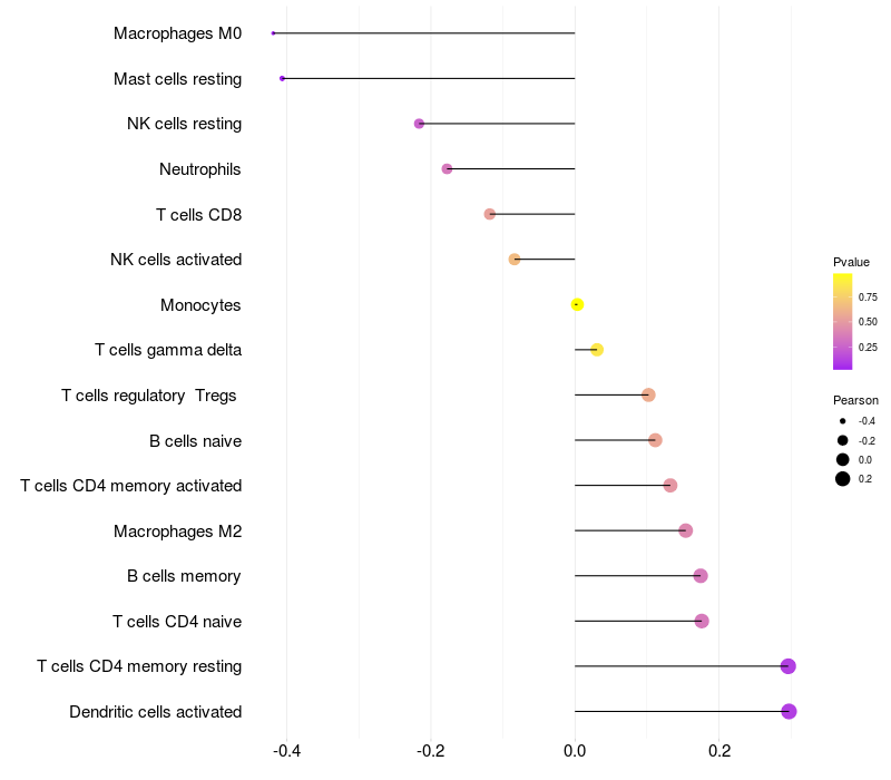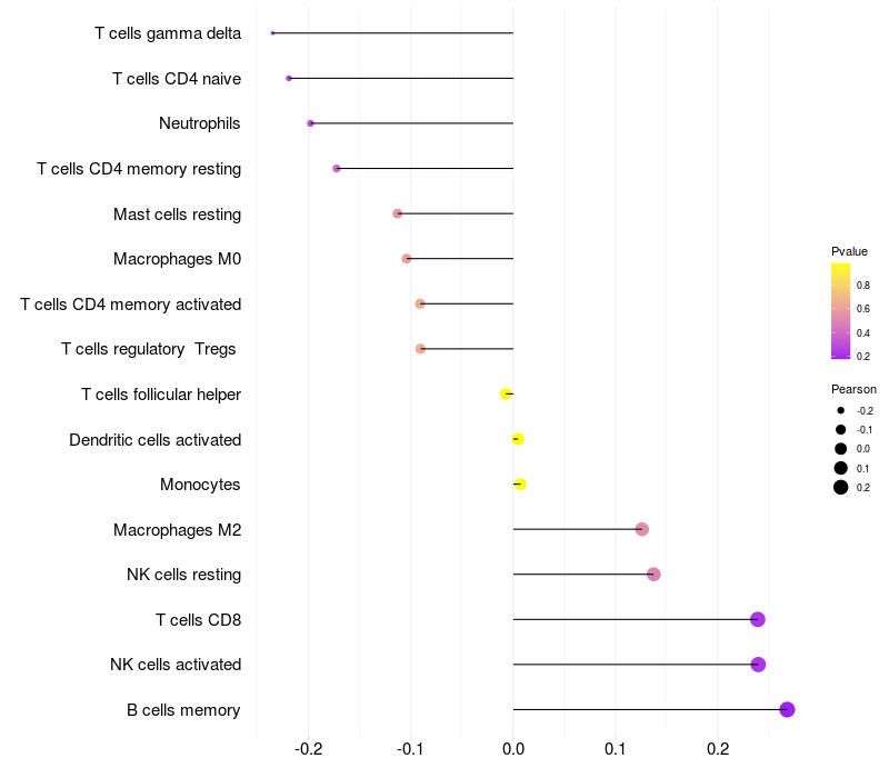 Lollipop of SLCO1C1 expression and immune infiltrating cell level correlation result in HTLV1+ samples
