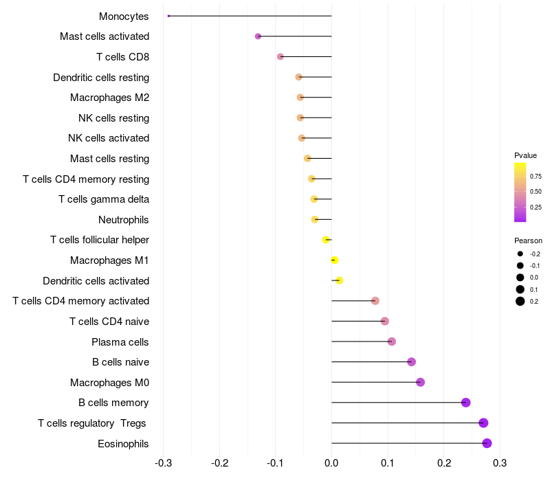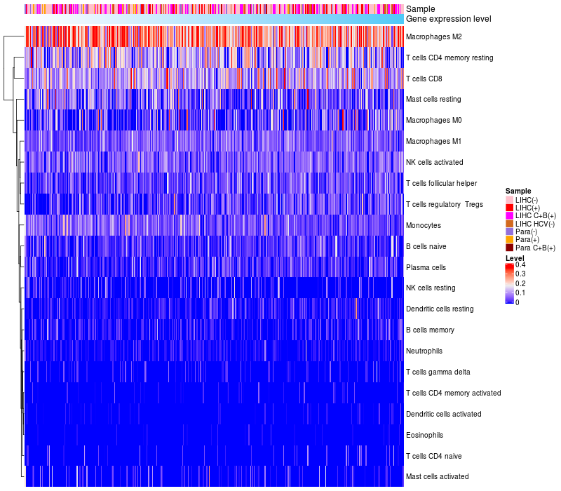 Relationship between gene expression and immune infiltrating cell level