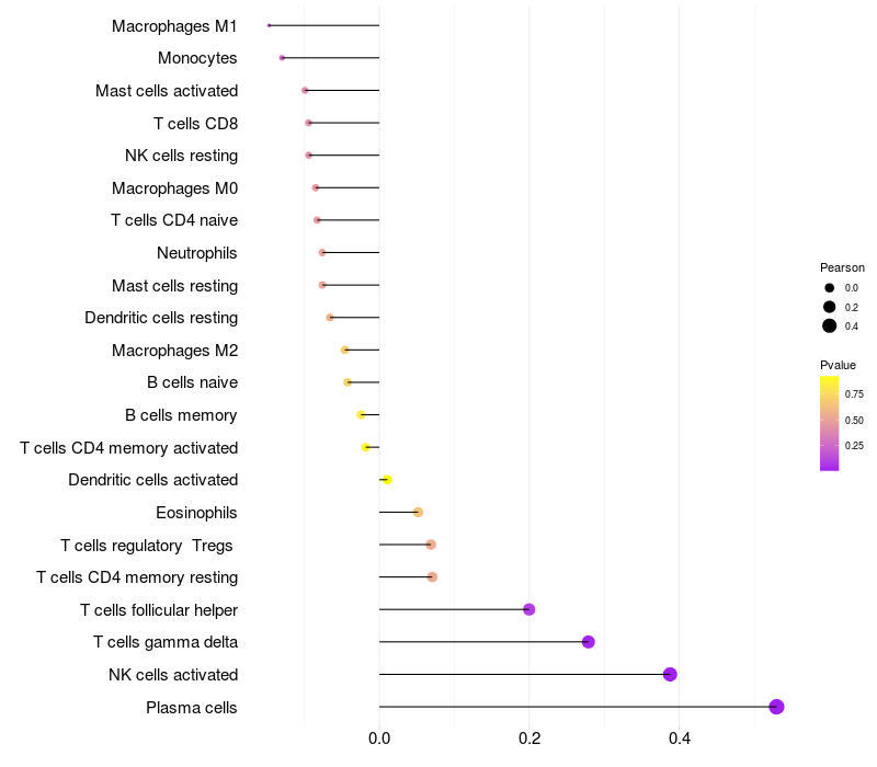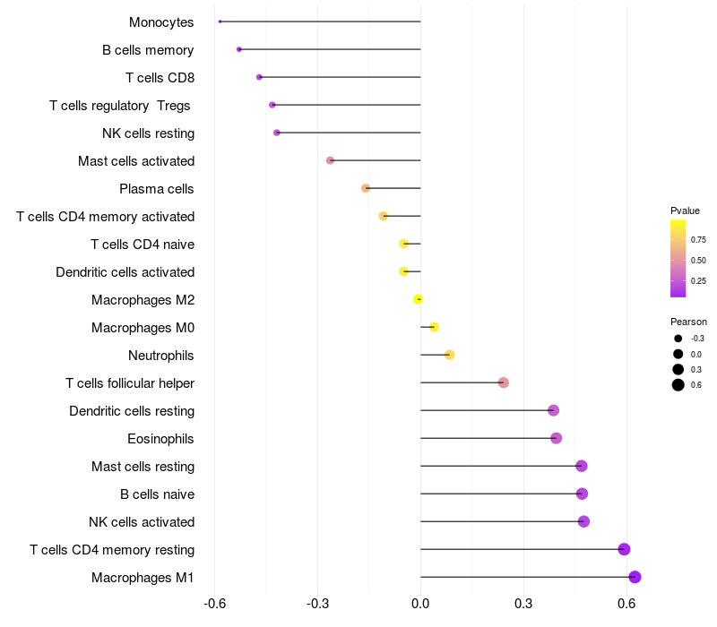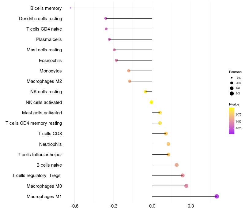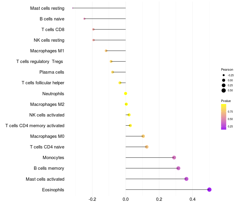 Lollipop of SLIT3 expression and immune infiltrating cell level correlation result in HBV+ Liver cirrhosis samples