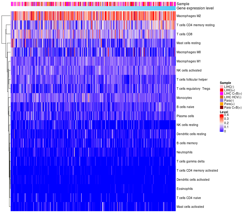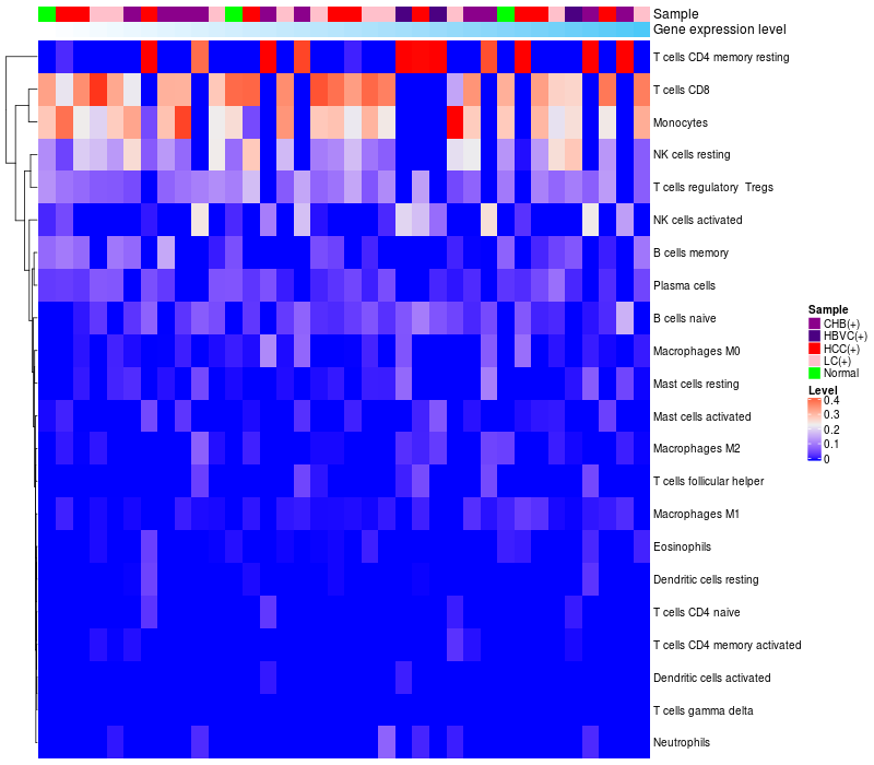 Relationship between gene expression and immune infiltrating cell level