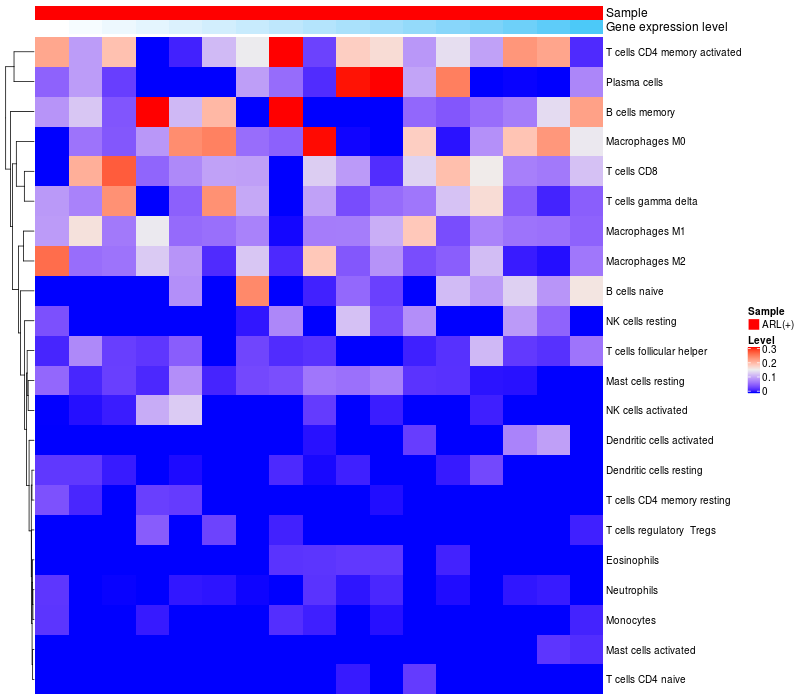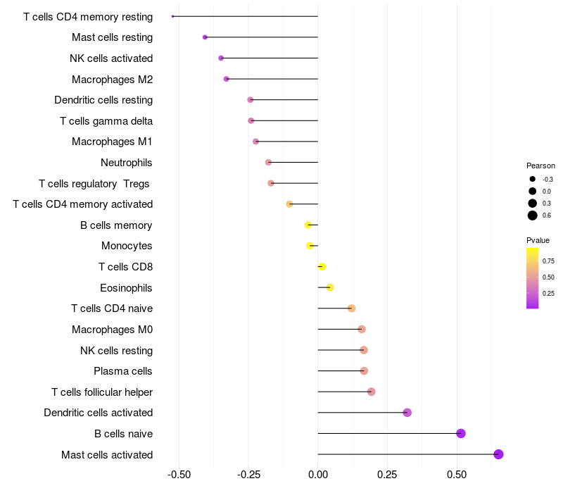 Relationship between gene expression and immune infiltrating cell level