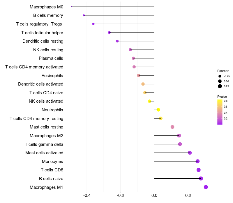 Lollipop of SMARCA2 expression and immune infiltrating cell level correlation result in HBV+ samples