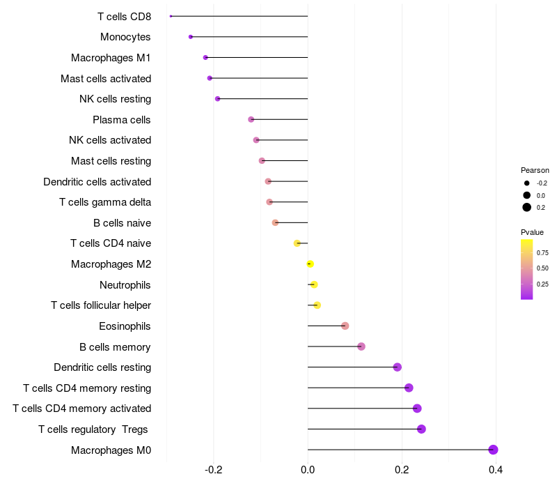 Lollipop of SMARCC1 expression and immune infiltrating cell level correlation result in HBV+ samples