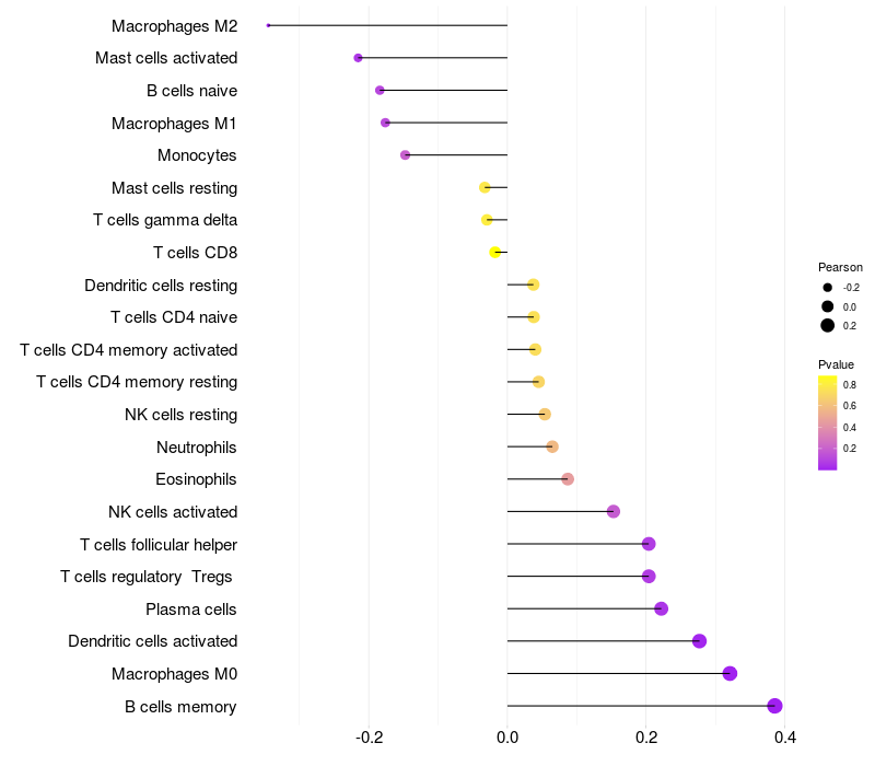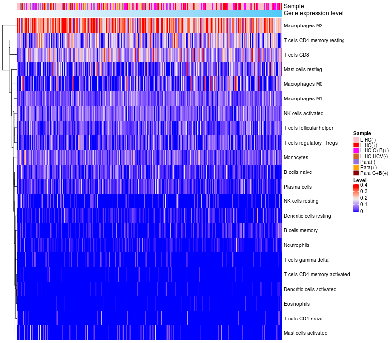 Relationship between gene expression and immune infiltrating cell level