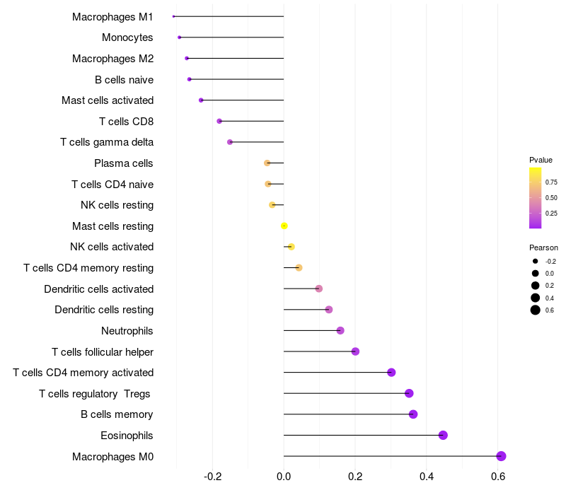 Lollipop of SMARCD1 expression and immune infiltrating cell level correlation result in HBV+ samples