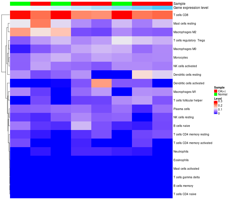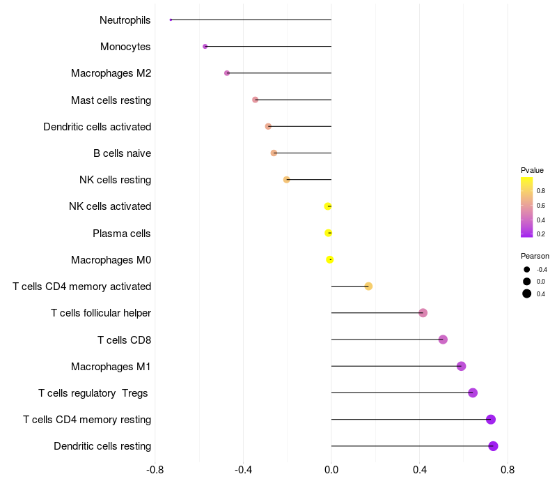 Relationship between gene expression and immune infiltrating cell level