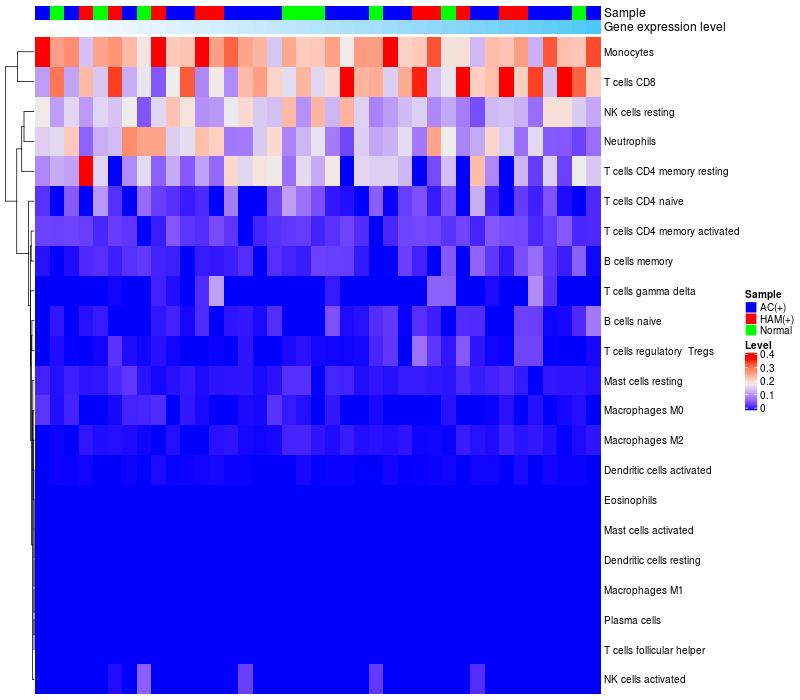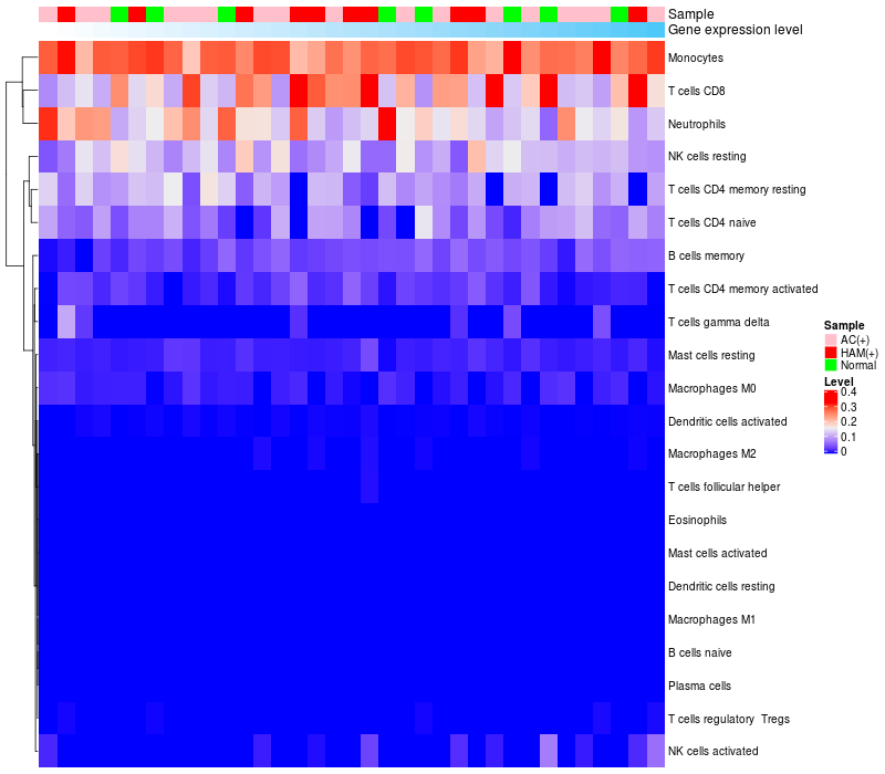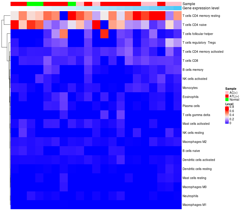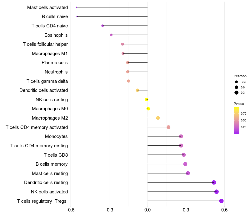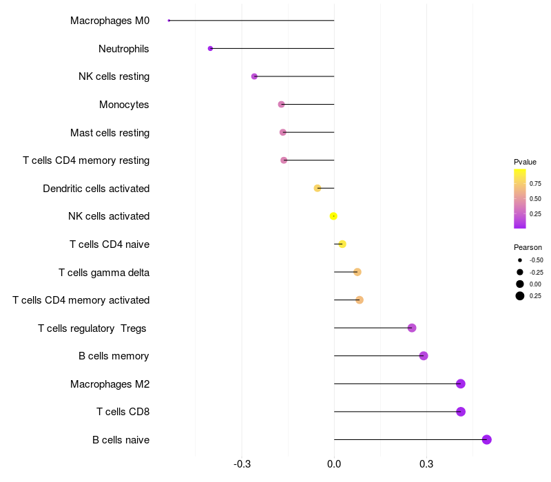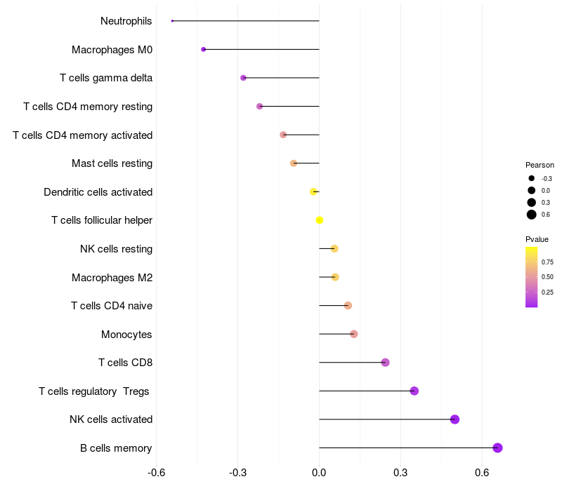 Lollipop of SNAPC2 expression and immune infiltrating cell level correlation result in HTLV1+ samples