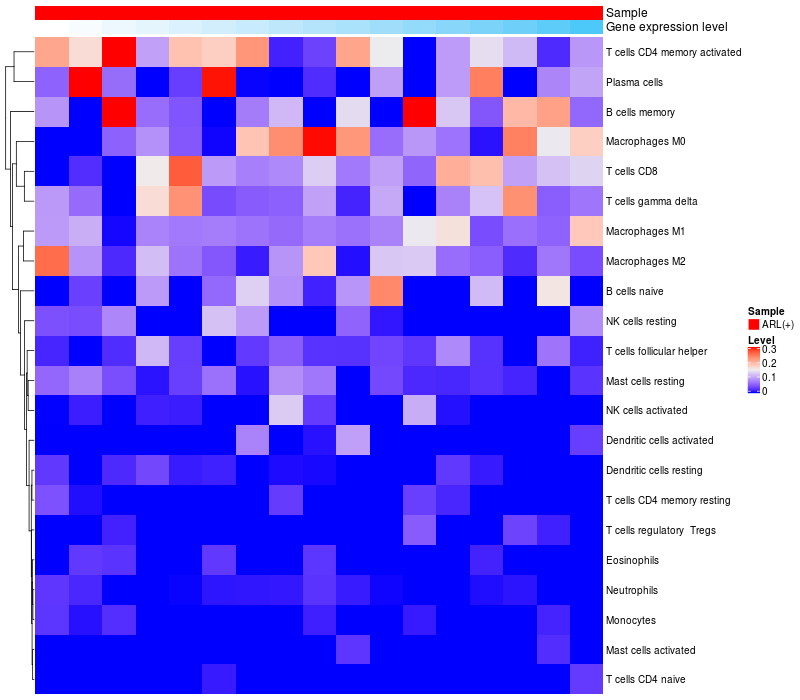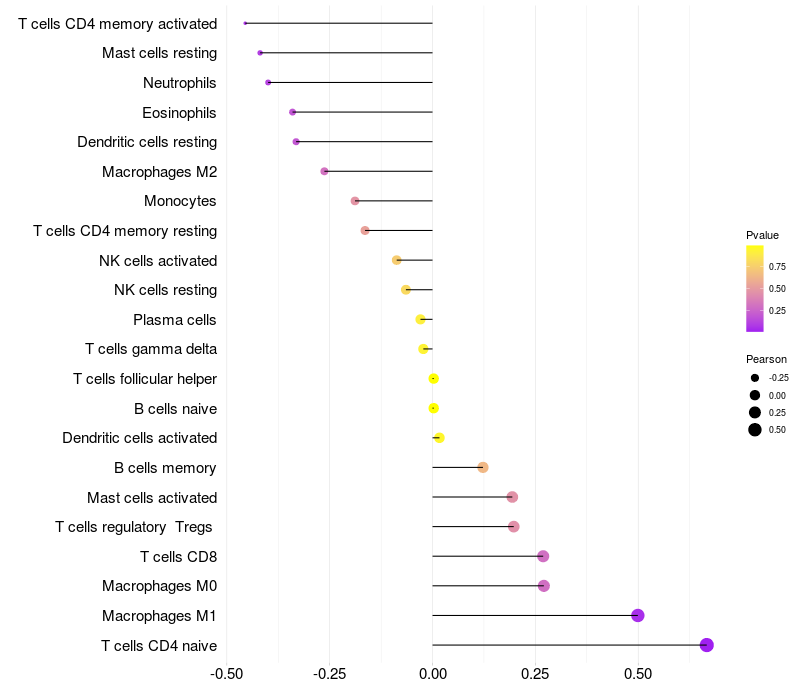 Relationship between gene expression and immune infiltrating cell level