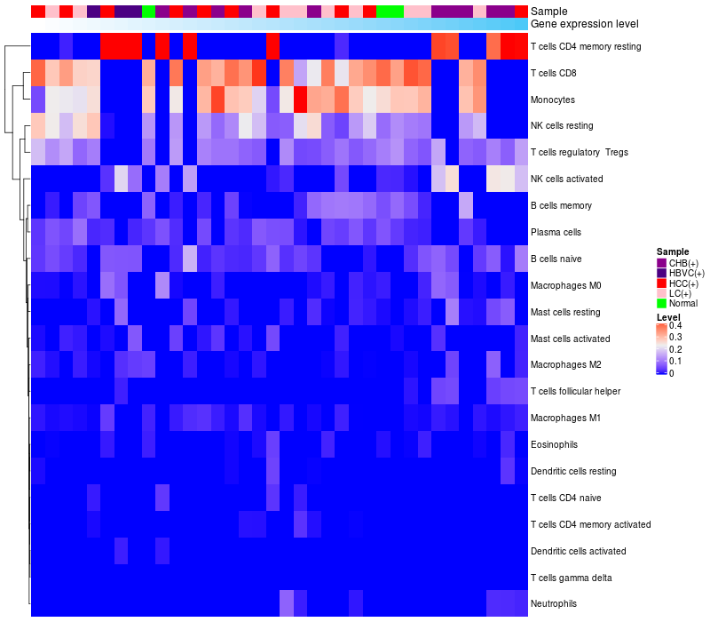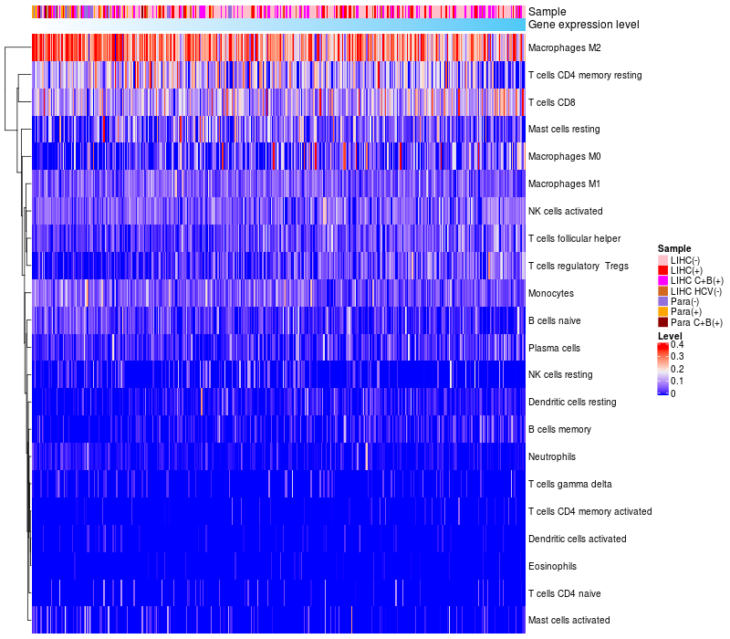 Liver hepatocellular carcinoma HCV (HBV+)(86), Liver hepatocellular carcinoma HCV (HBV-)(19), Liver hepatocellular carcinoma (HBV+)(209), Liver hepatocellular carcinoma (HBV+)(60), Paracancerous HCV (HBV+)(4), Paracancerous (HBV-)(28), Paracancerous (HBV+)(18) |