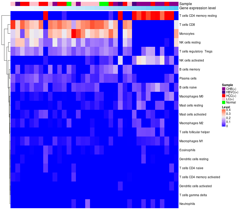 Relationship between gene expression and immune infiltrating cell level