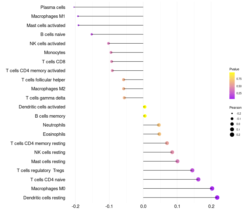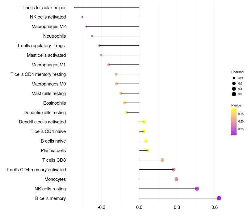 Lollipop of SNX15 expression and immune infiltrating cell level correlation result in HBV+ Hepatocellular carcinoma samples