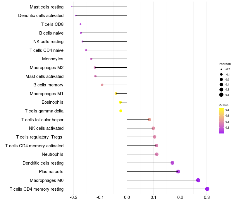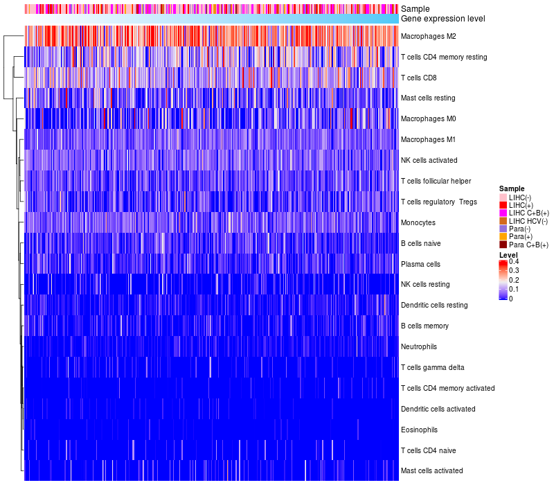 Relationship between gene expression and immune infiltrating cell level