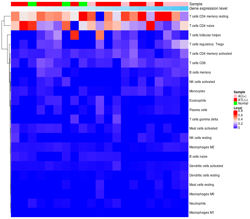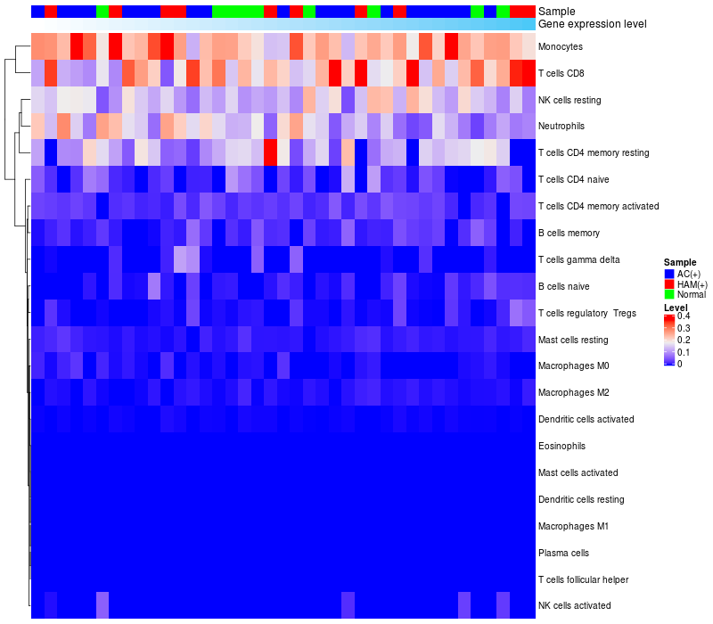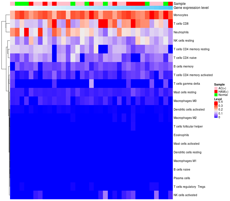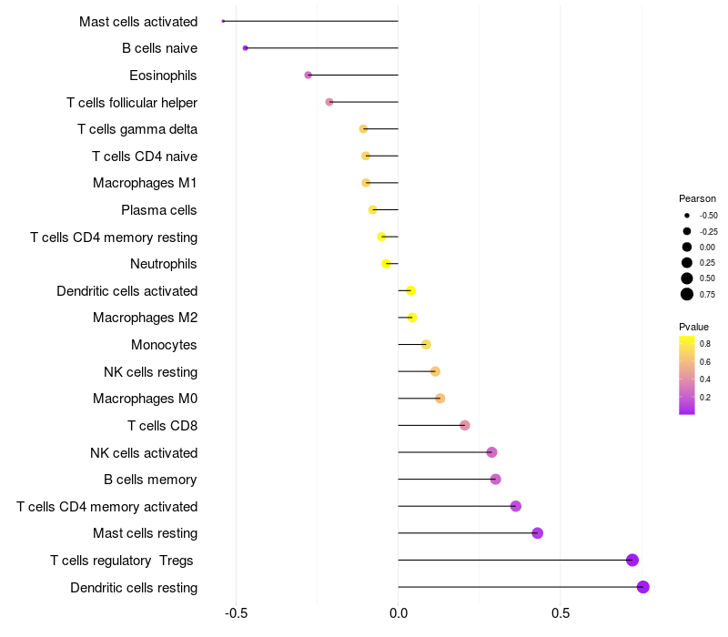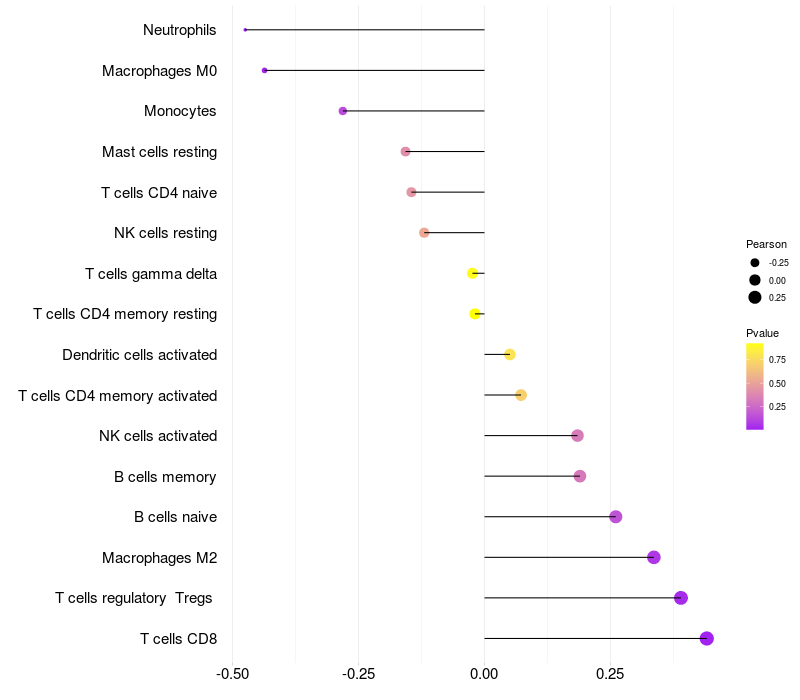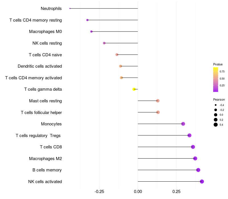 Lollipop of SNX17 expression and immune infiltrating cell level correlation result in HTLV1+ samples