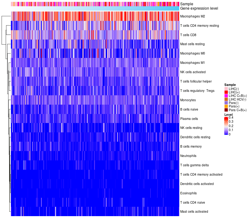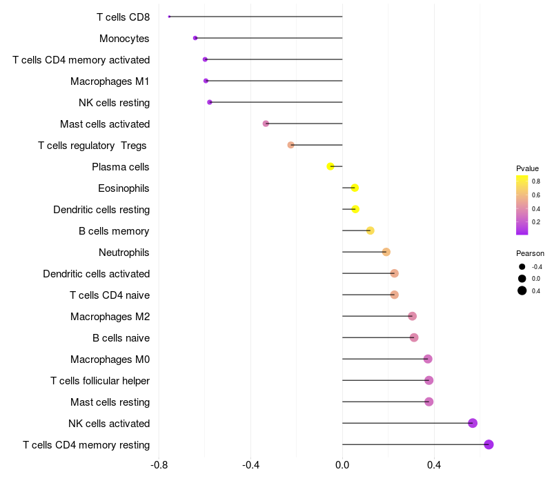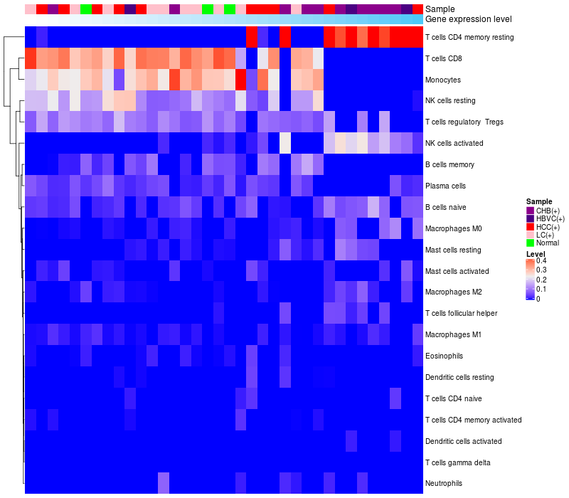 Relationship between gene expression and immune infiltrating cell level