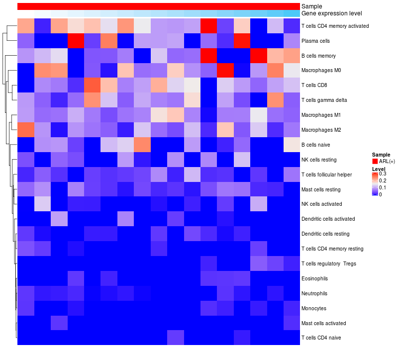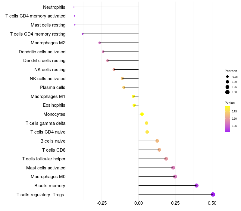 Relationship between gene expression and immune infiltrating cell level