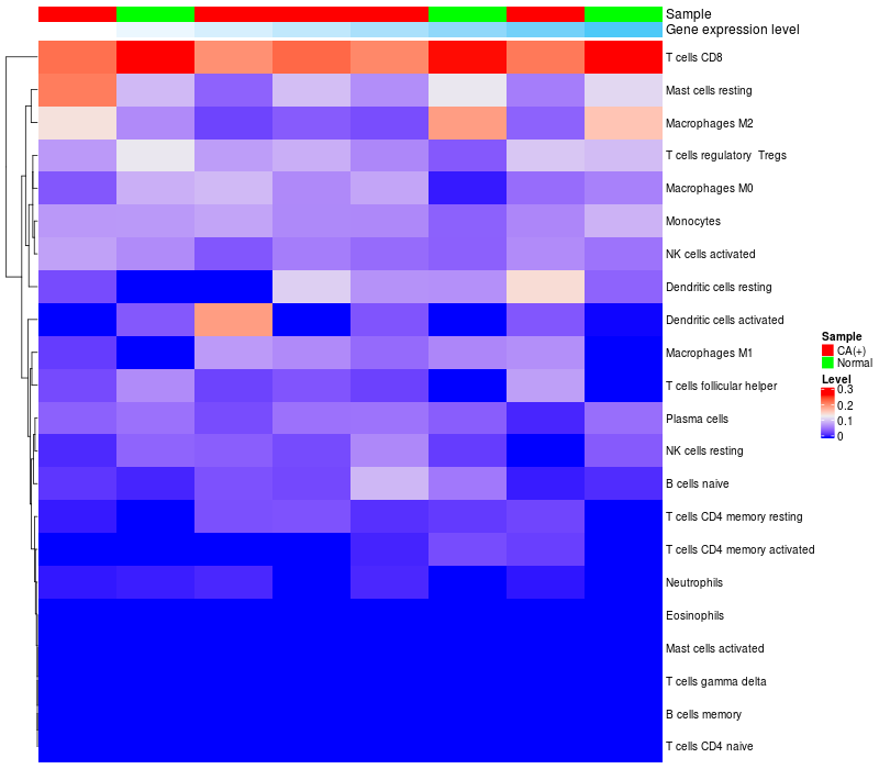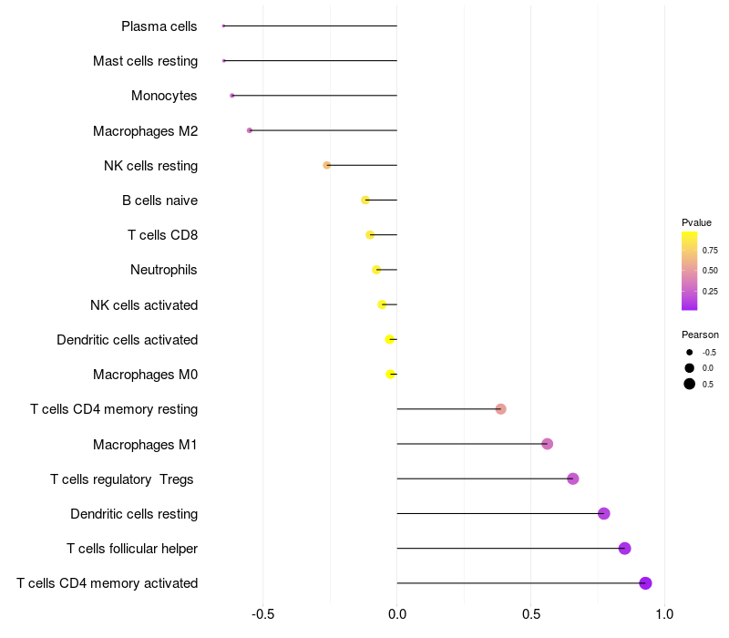 Relationship between gene expression and immune infiltrating cell level