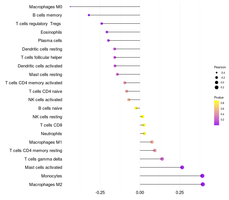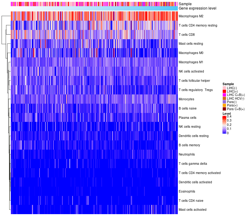 Relationship between gene expression and immune infiltrating cell level