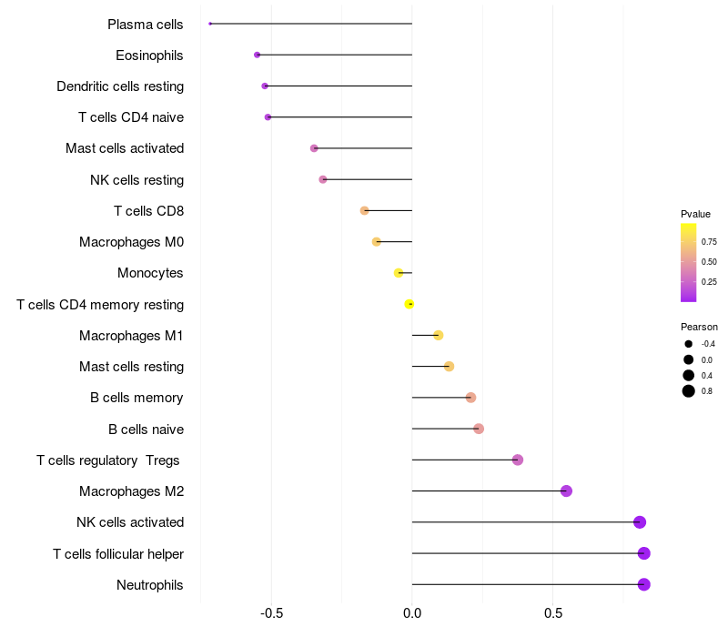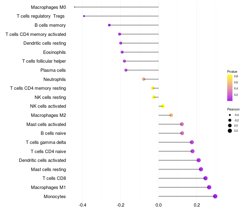 Lollipop of SORBS2 expression and immune infiltrating cell level correlation result in HBV+ Liver cirrhosis samples