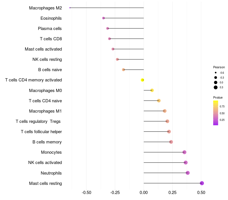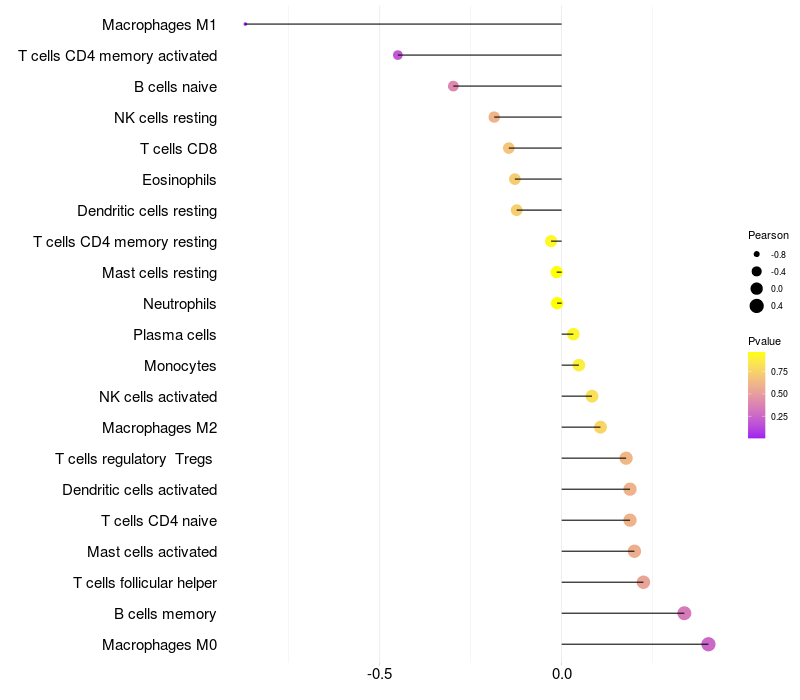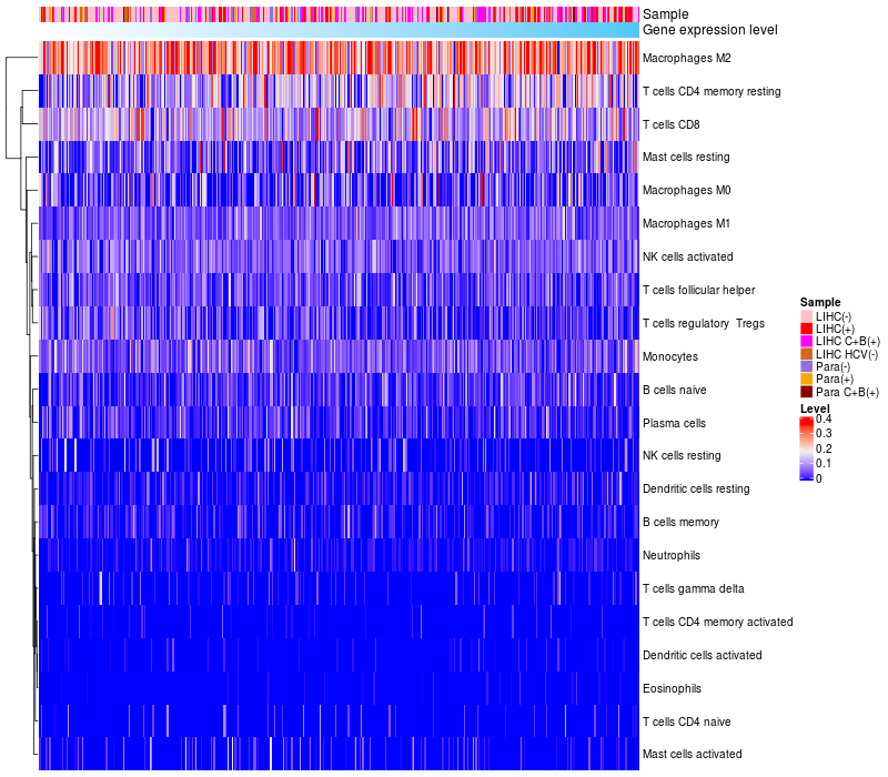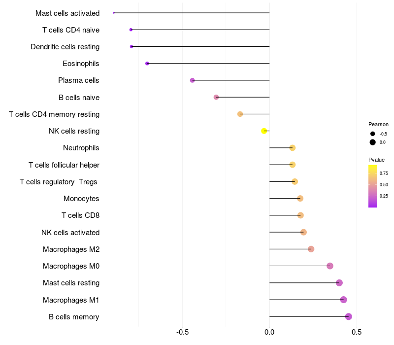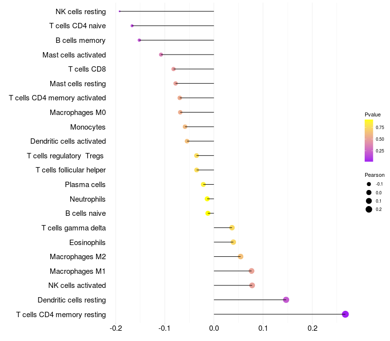 Relationship between gene expression and immune infiltrating cell level