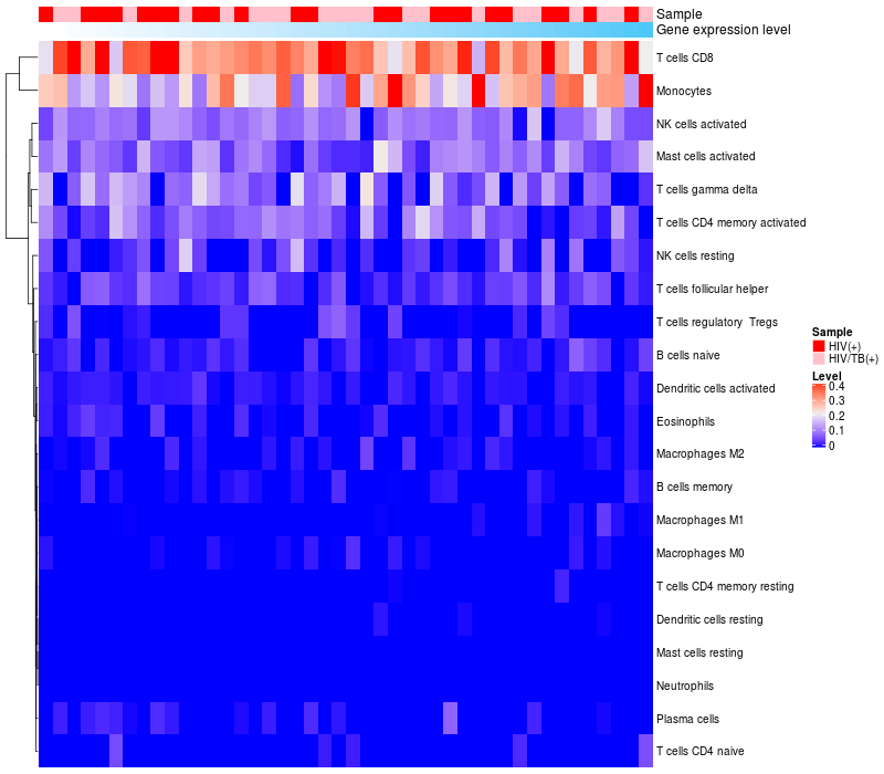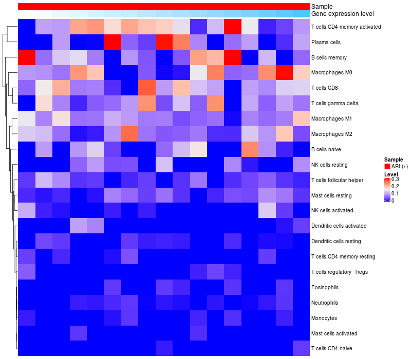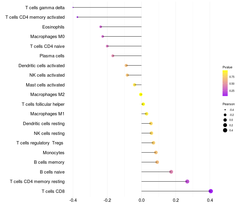 Relationship between gene expression and immune infiltrating cell level