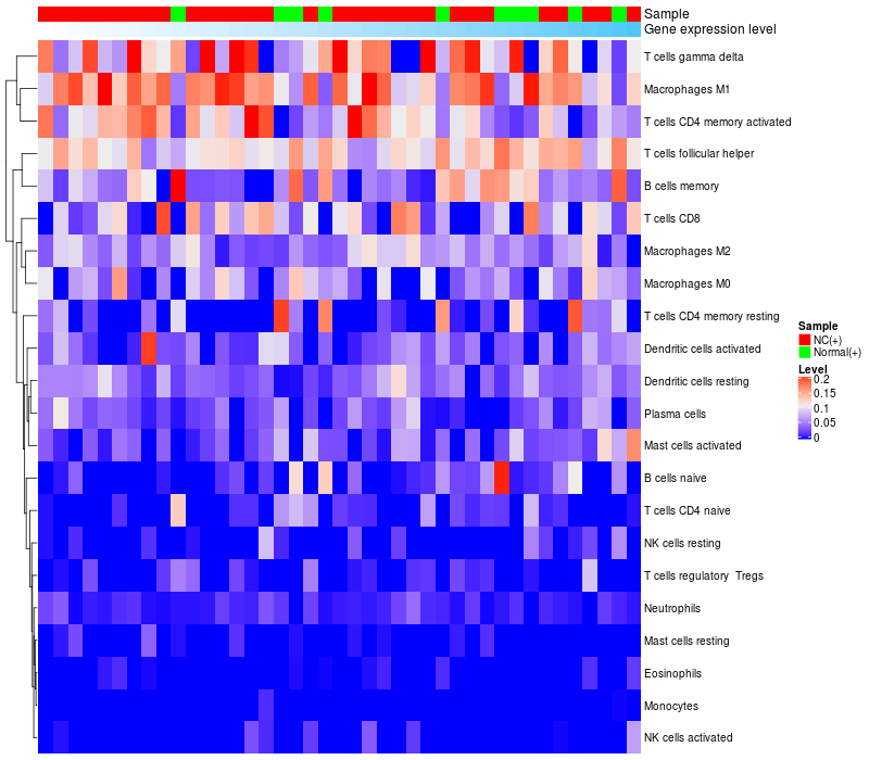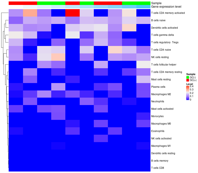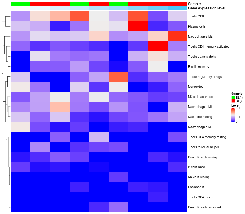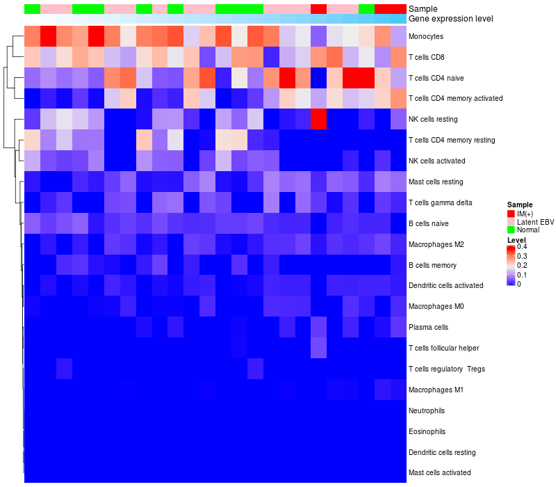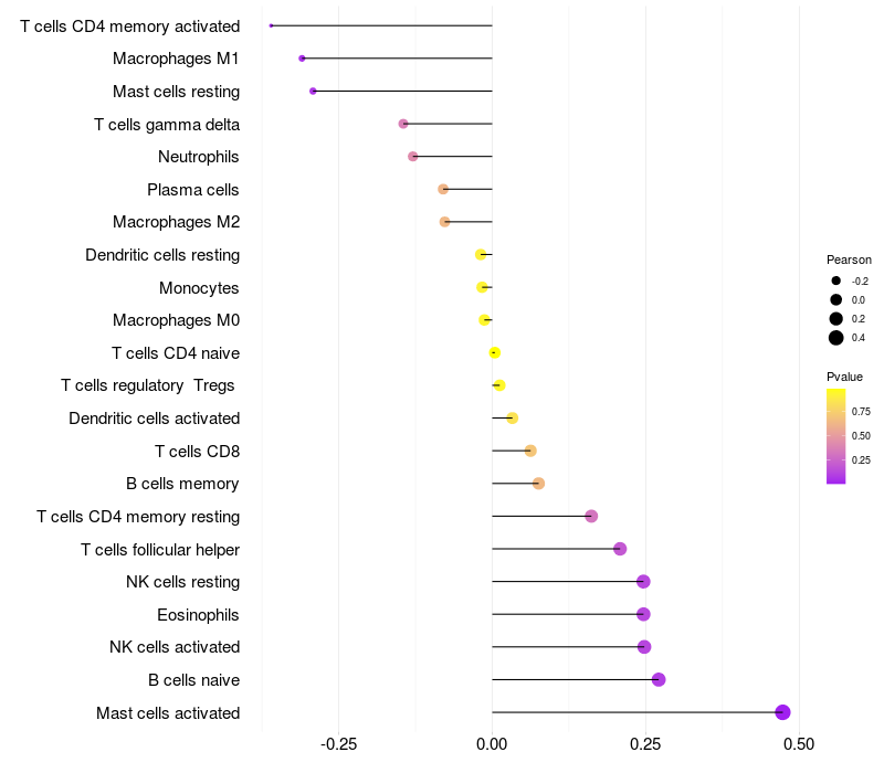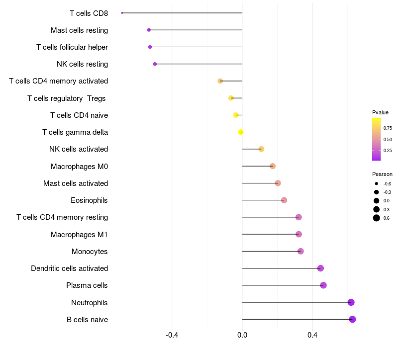 Lollipop of SOX5 expression and immune infiltrating cell level correlation result in EBV+ samples