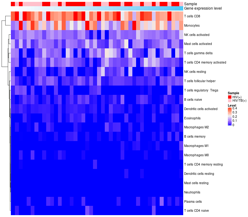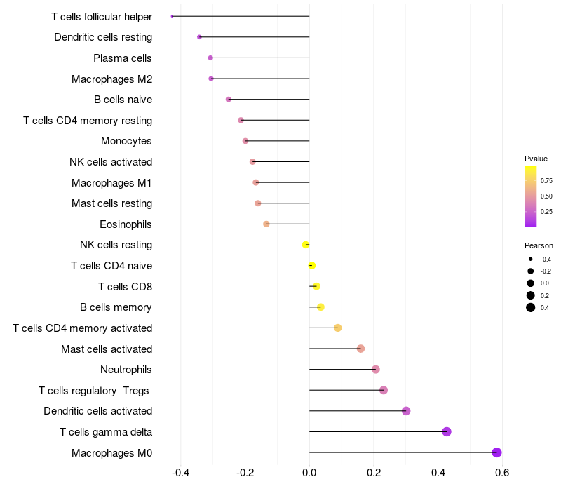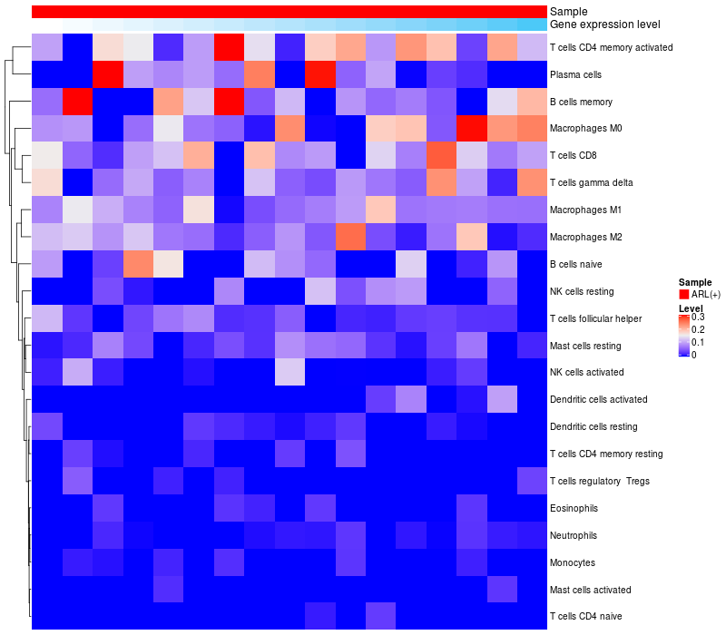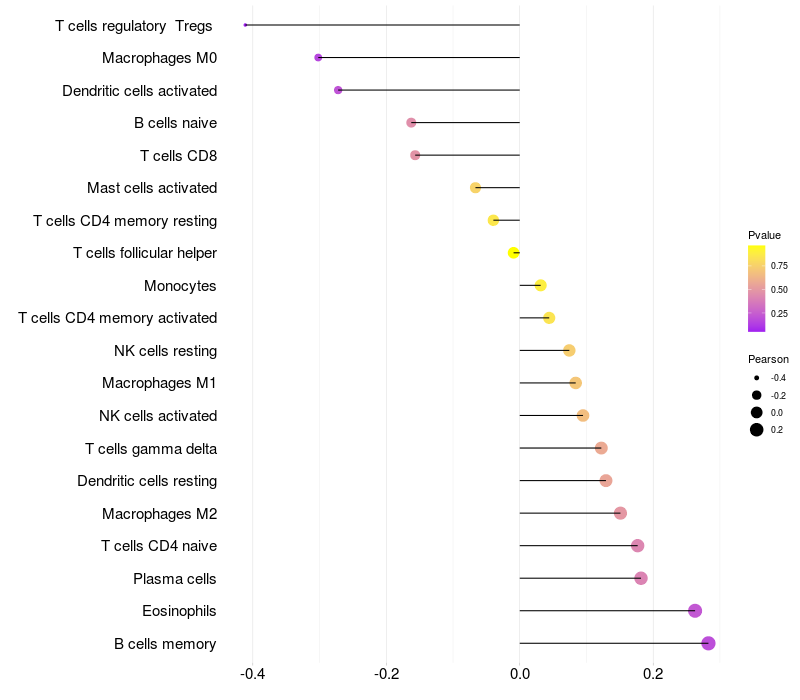 Relationship between gene expression and immune infiltrating cell level