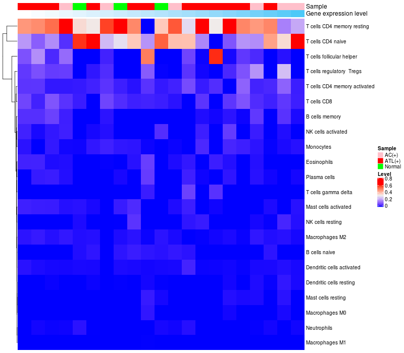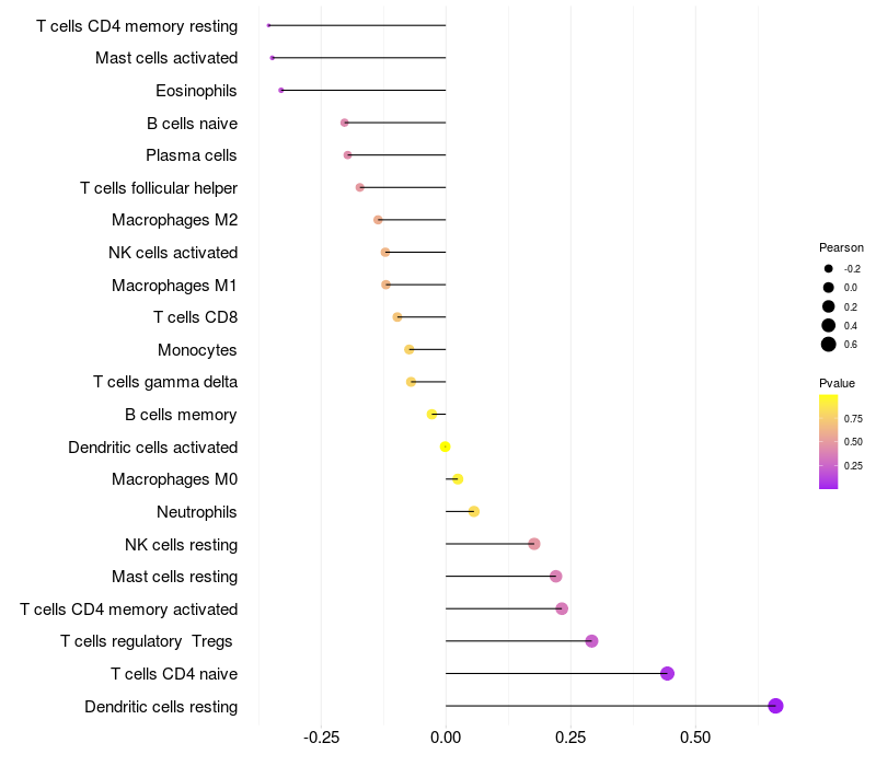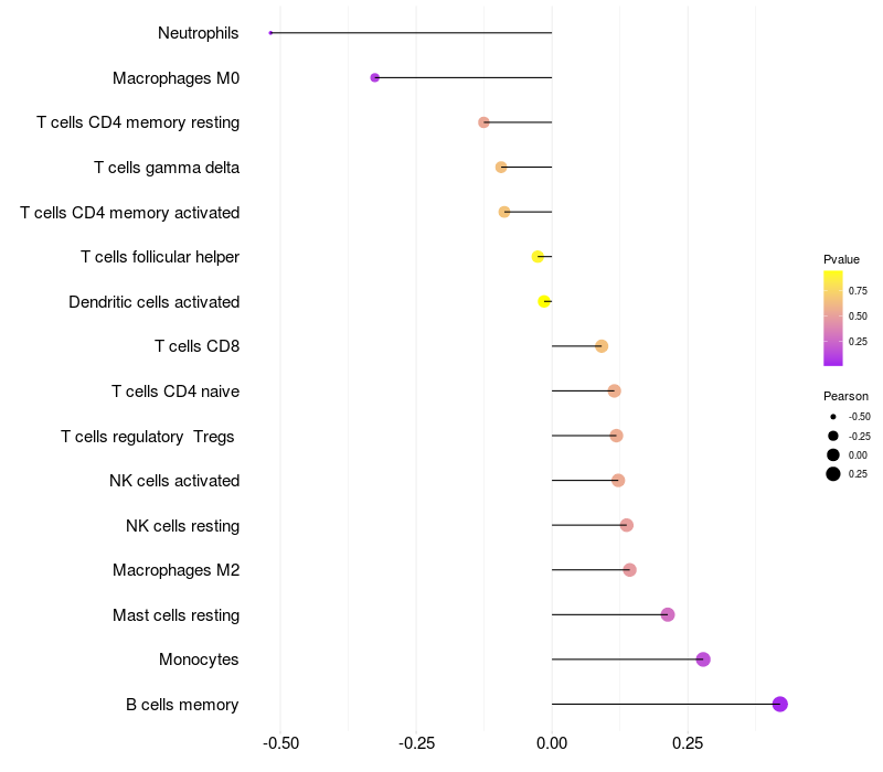 Lollipop of SPAG17 expression and immune infiltrating cell level correlation result in HTLV1+ samples