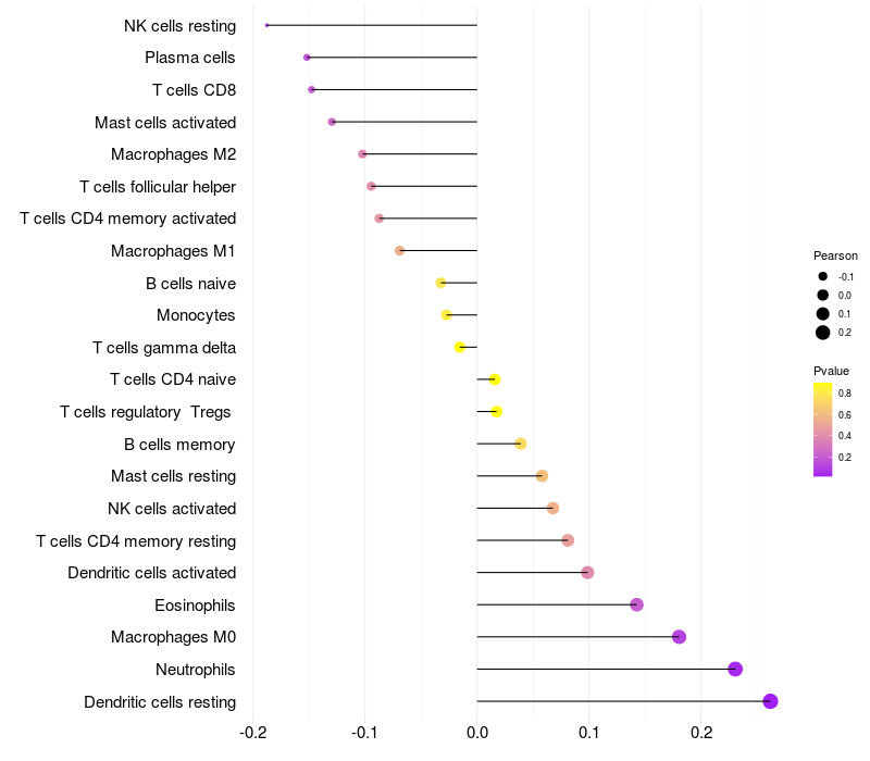 Lollipop of SPAST expression and immune infiltrating cell level correlation result in HBV+ samples