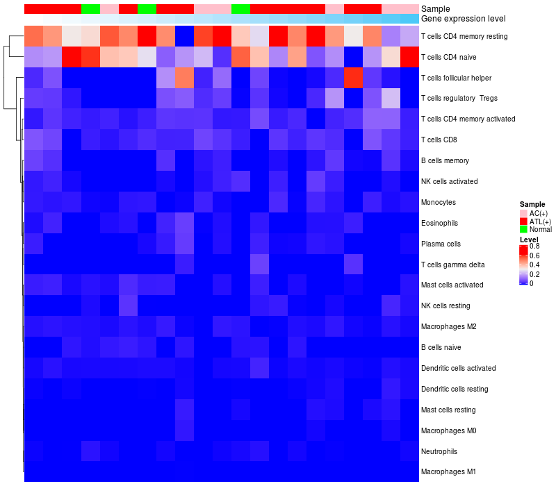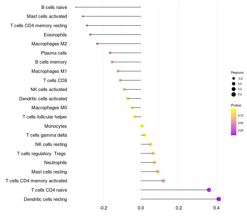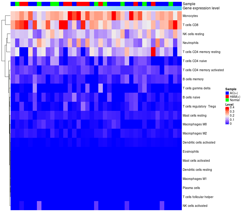 Relationship between gene expression and immune infiltrating cell level