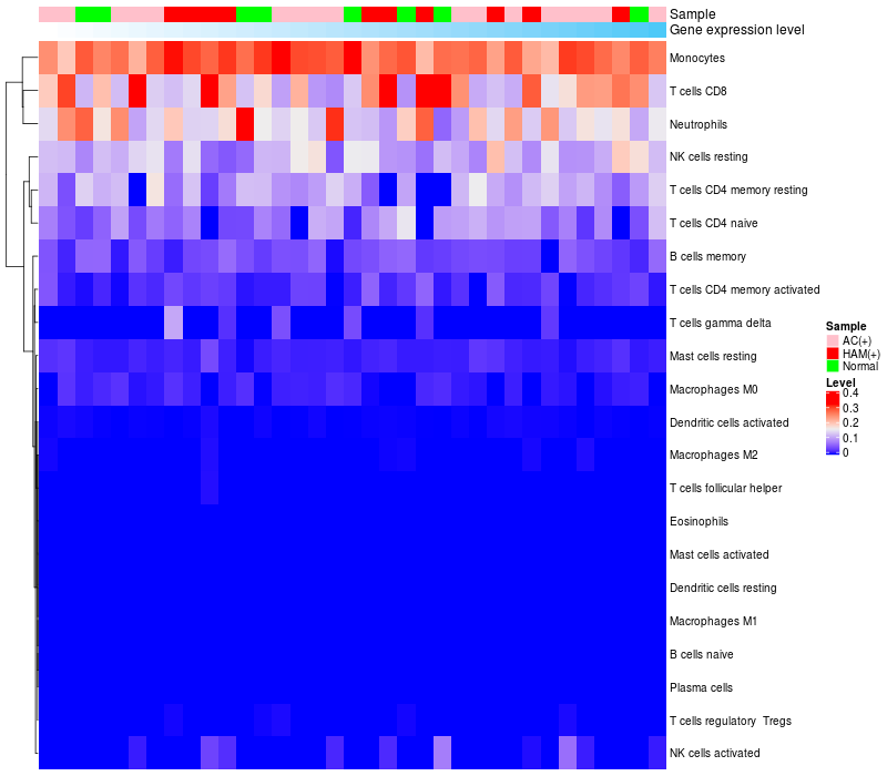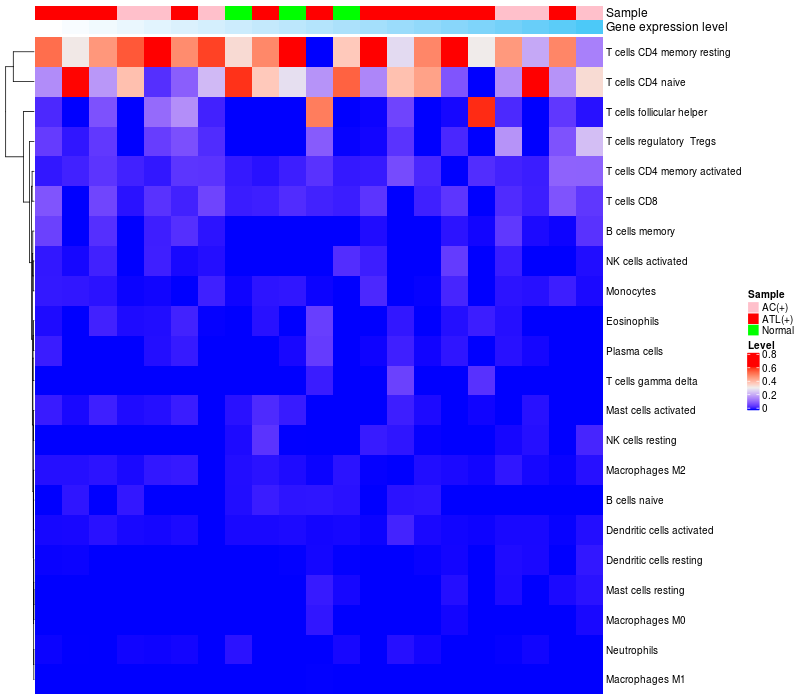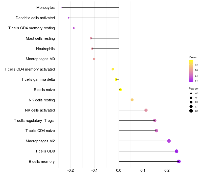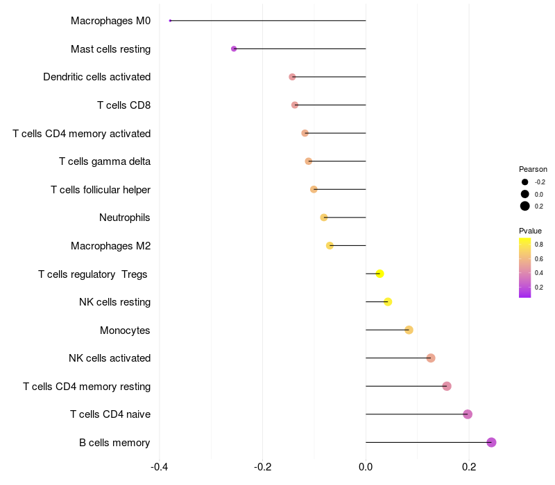 Lollipop of SPATA18 expression and immune infiltrating cell level correlation result in HTLV1+ samples