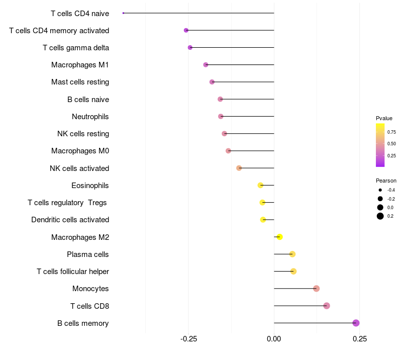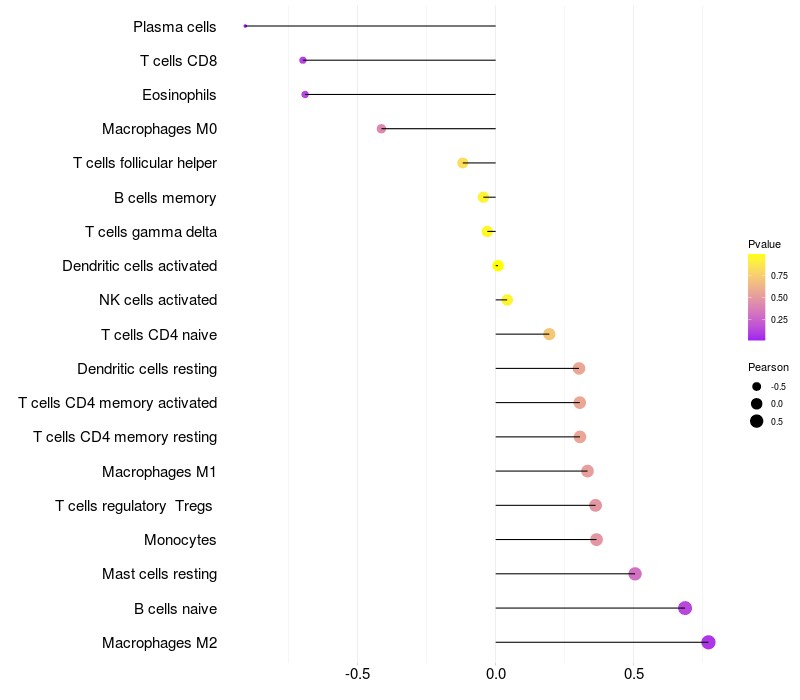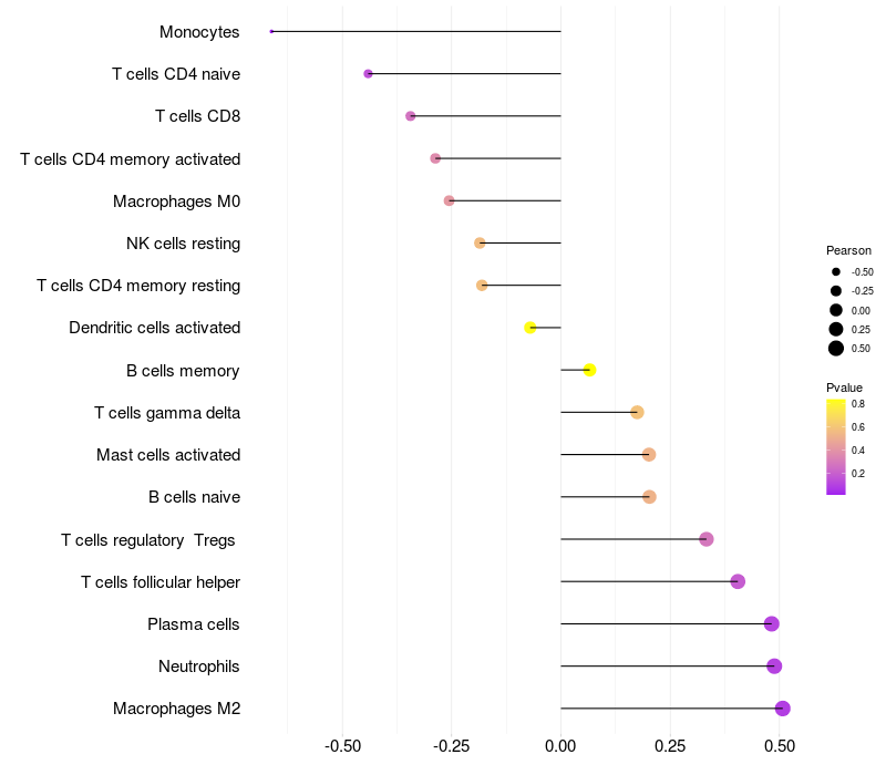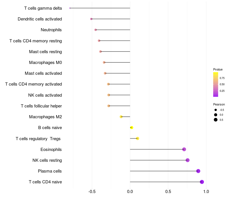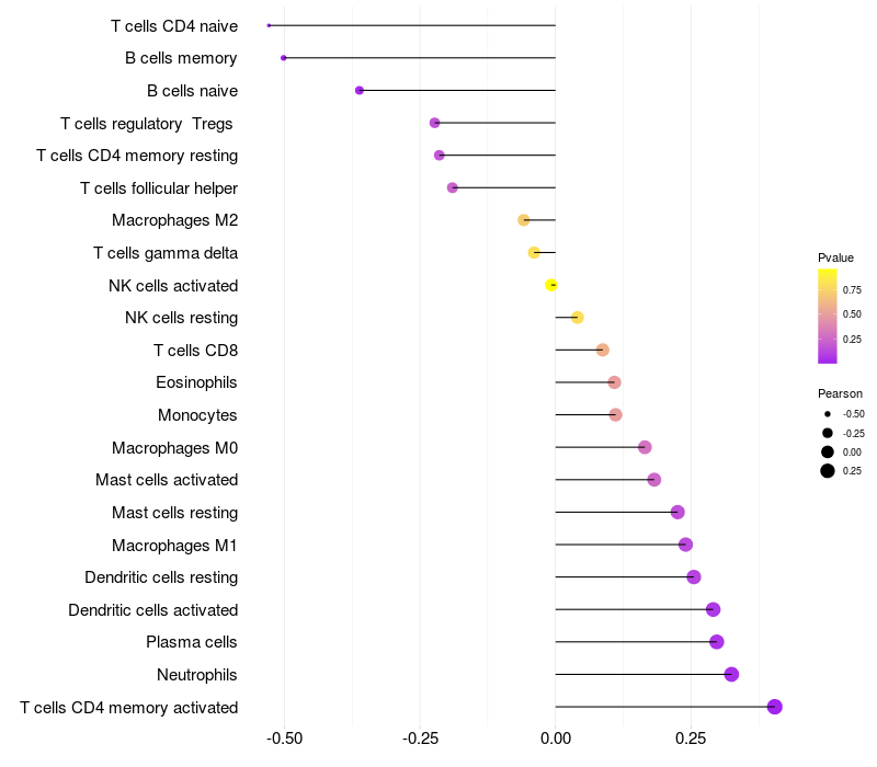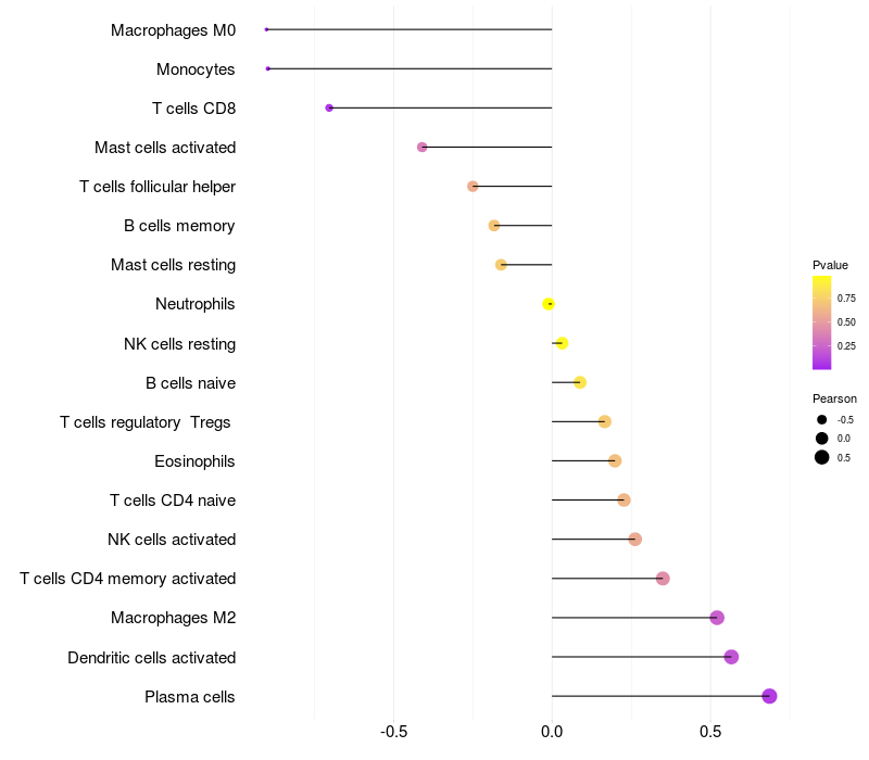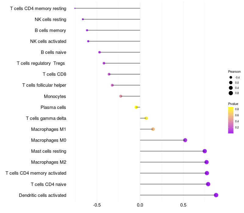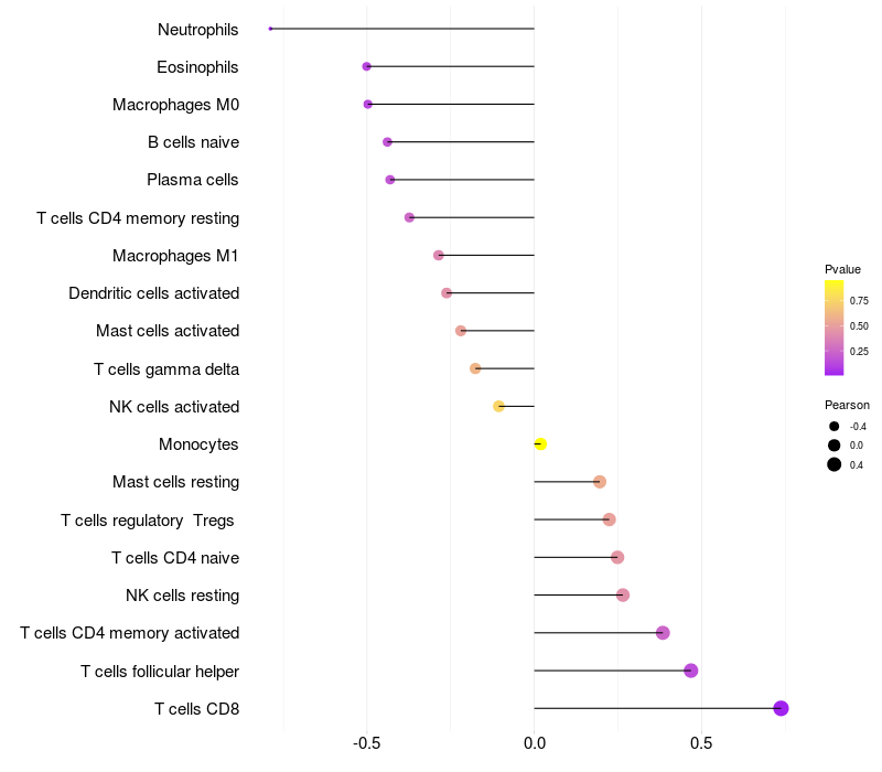 Lollipop of SPATA5 expression and immune infiltrating cell level correlation result in EBV+ samples