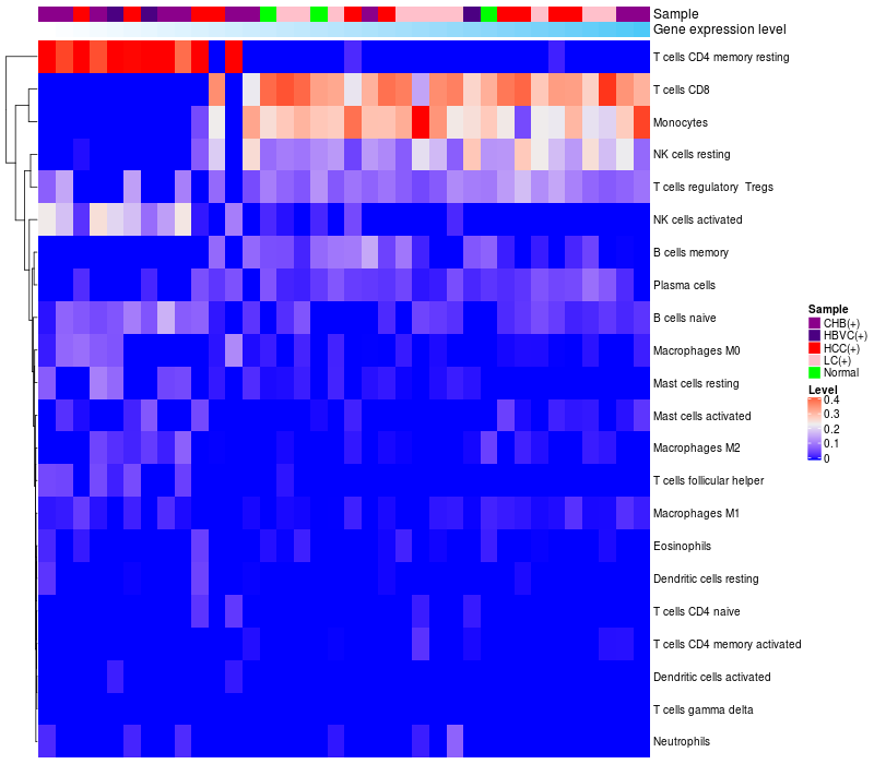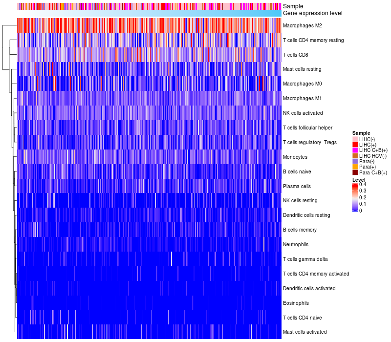 Liver hepatocellular carcinoma HCV (HBV+)(86), Liver hepatocellular carcinoma HCV (HBV-)(19), Liver hepatocellular carcinoma (HBV+)(209), Liver hepatocellular carcinoma (HBV+)(60), Paracancerous HCV (HBV+)(4), Paracancerous (HBV-)(28), Paracancerous (HBV+)(18) |