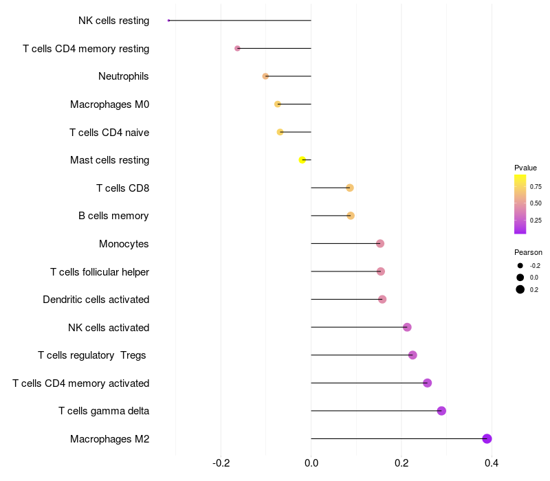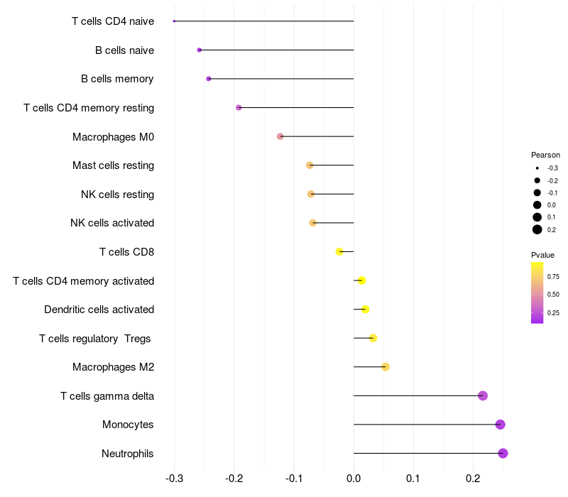 Lollipop of SPATS1 expression and immune infiltrating cell level correlation result in HTLV1+ samples