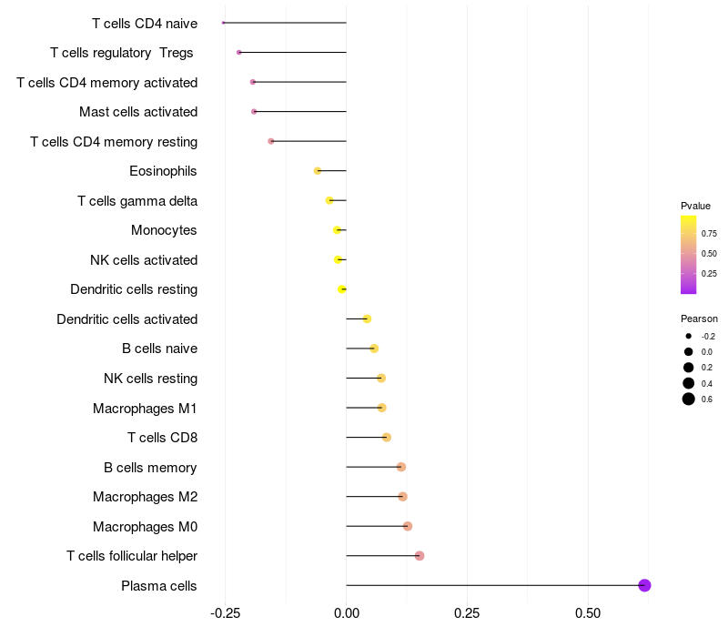 Relationship between gene expression and immune infiltrating cell level