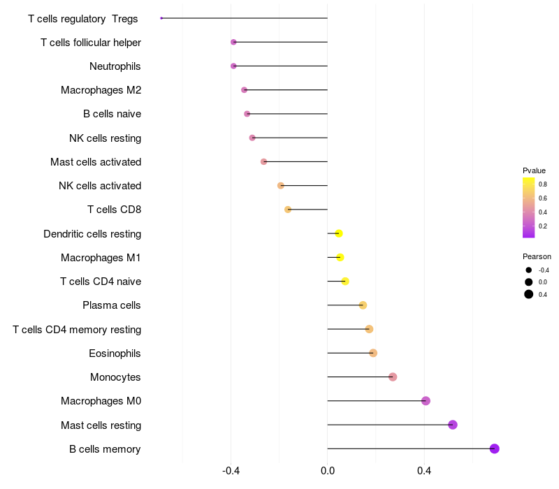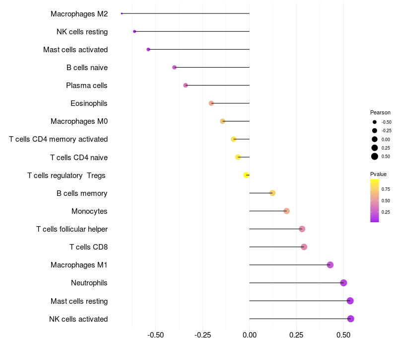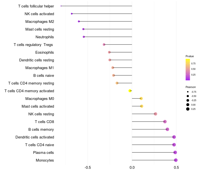 Lollipop of SPECC1 expression and immune infiltrating cell level correlation result in HBV+ Liver cirrhosis samples