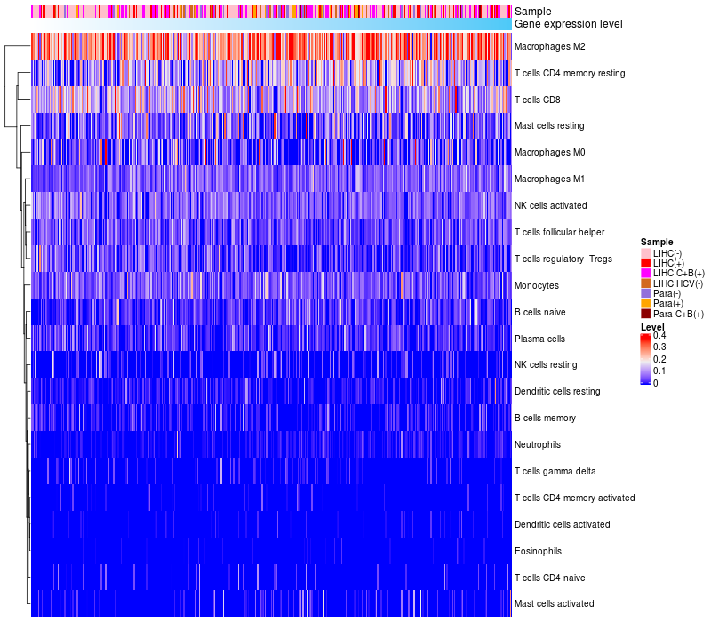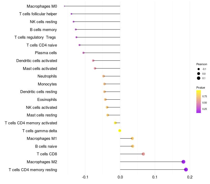 Relationship between gene expression and immune infiltrating cell level