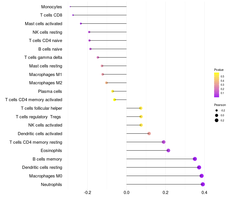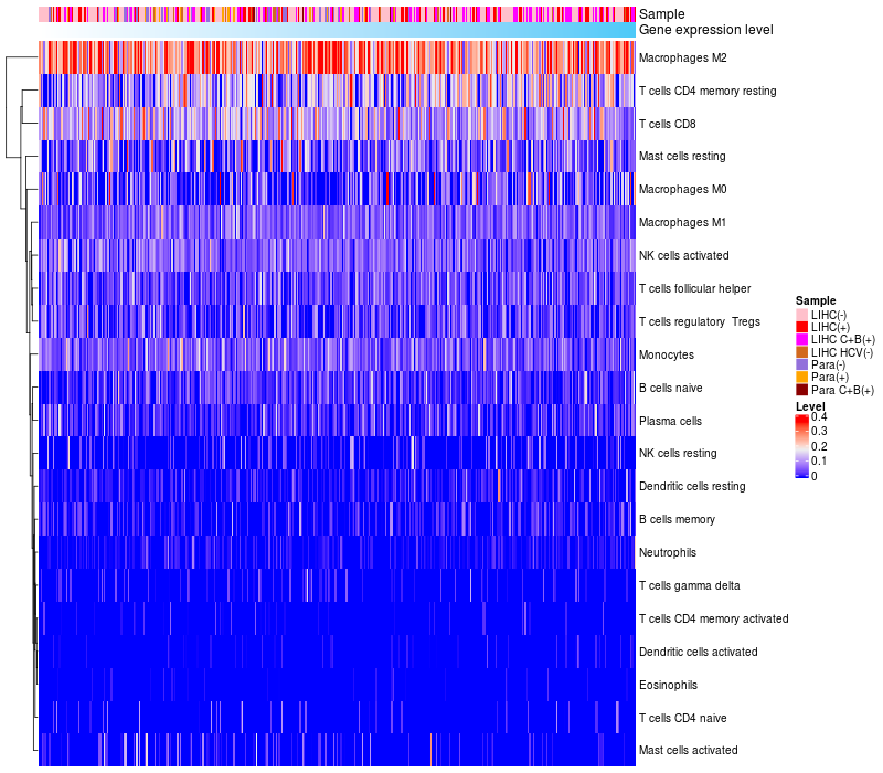 Relationship between gene expression and immune infiltrating cell level