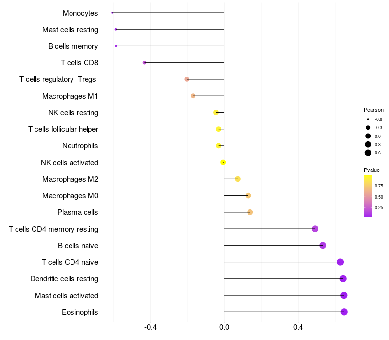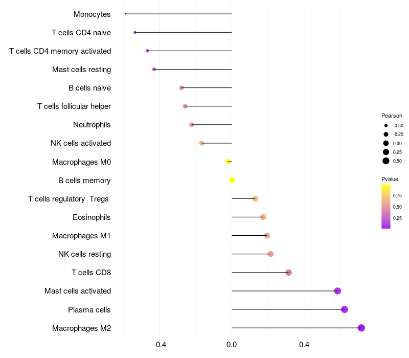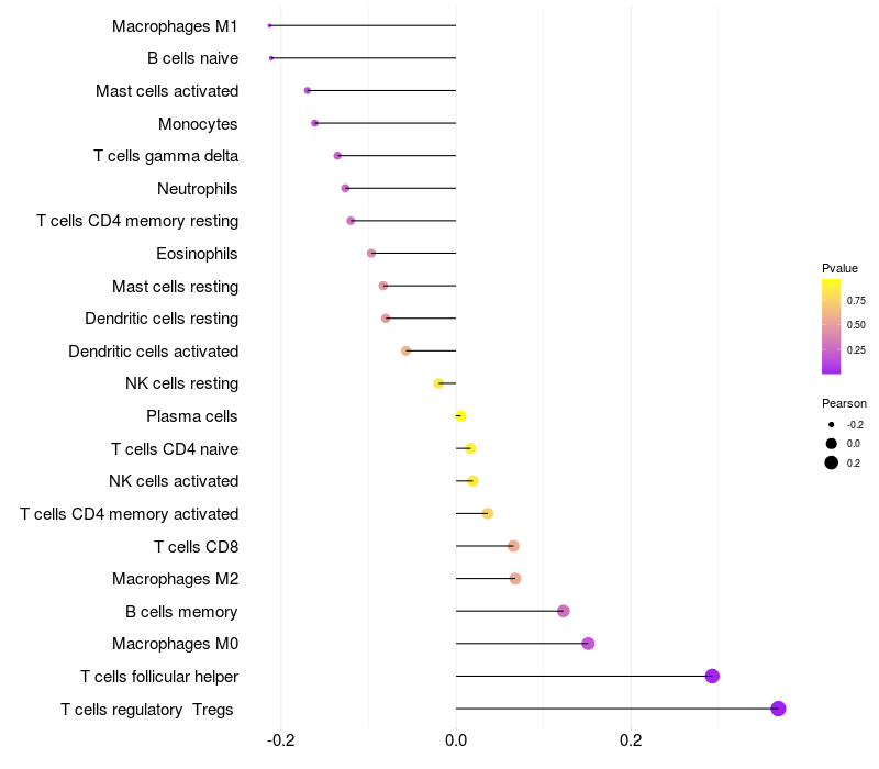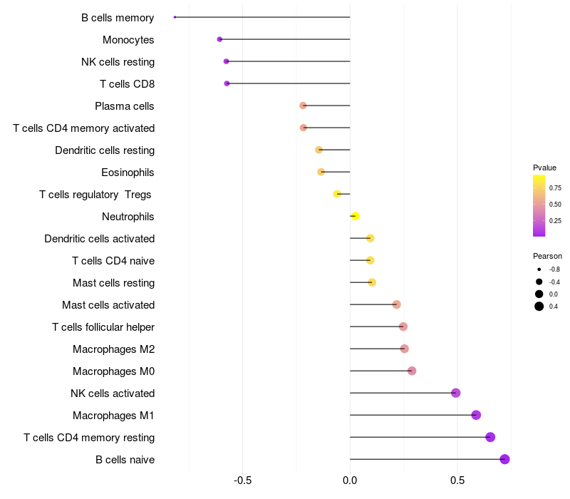 Lollipop of SPIRE2 expression and immune infiltrating cell level correlation result in HBV+ Liver cirrhosis samples