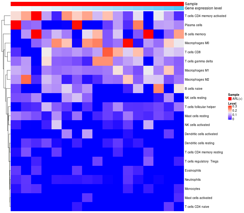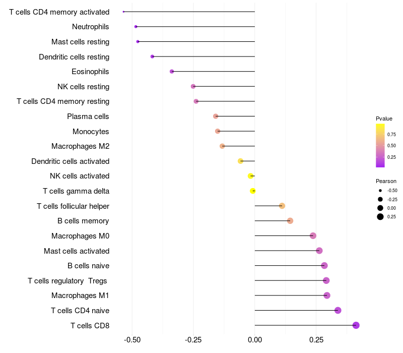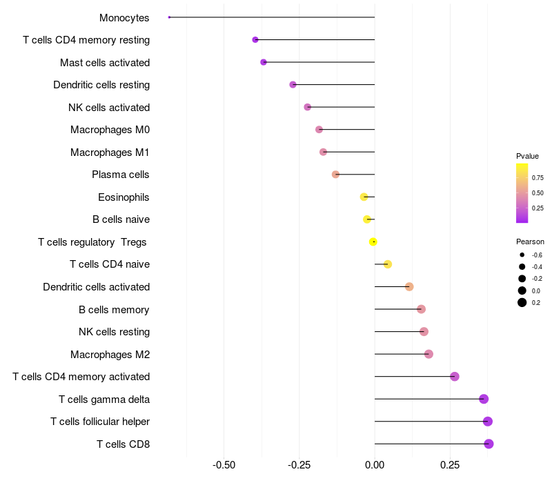 Relationship between gene expression and immune infiltrating cell level