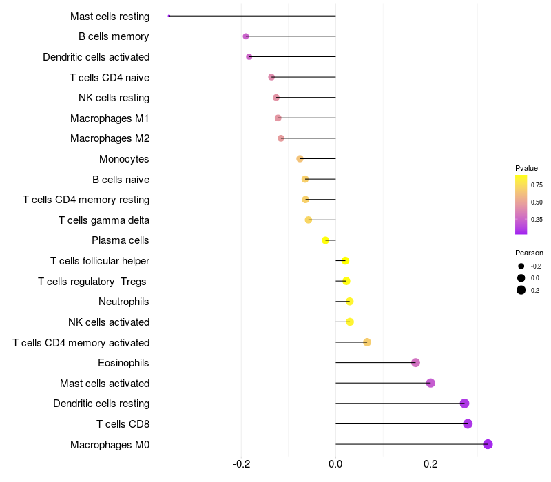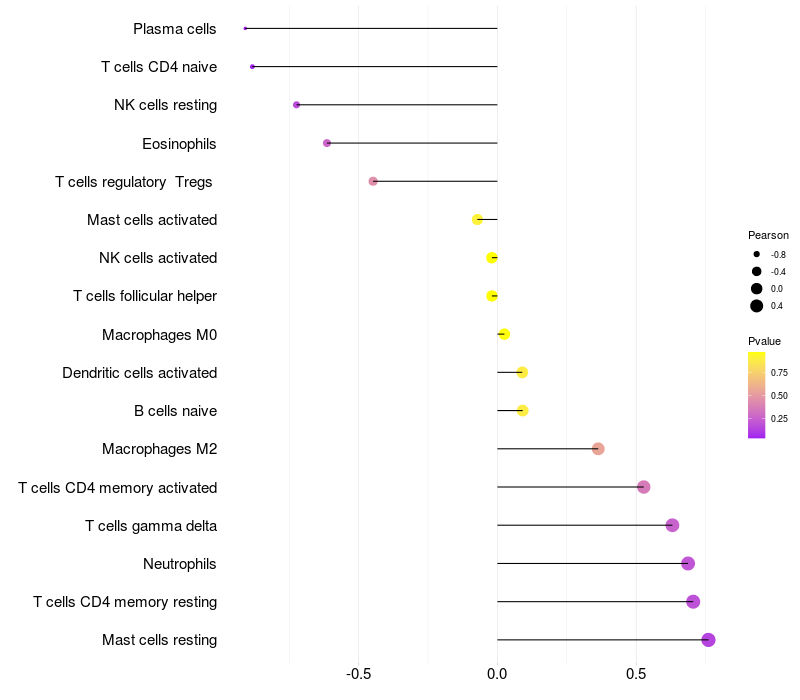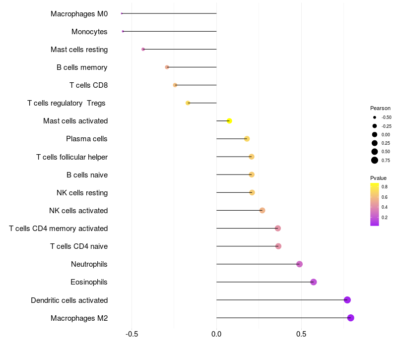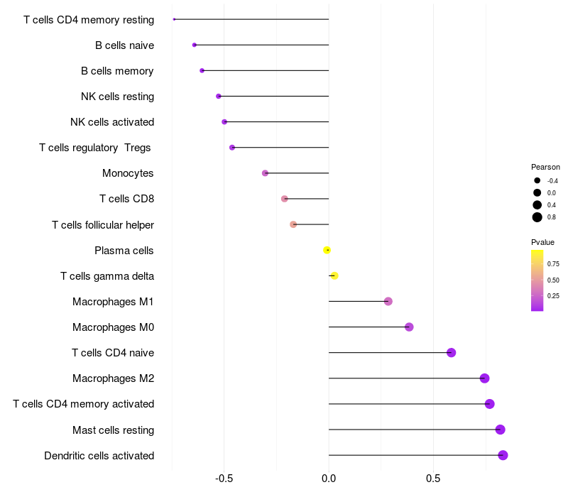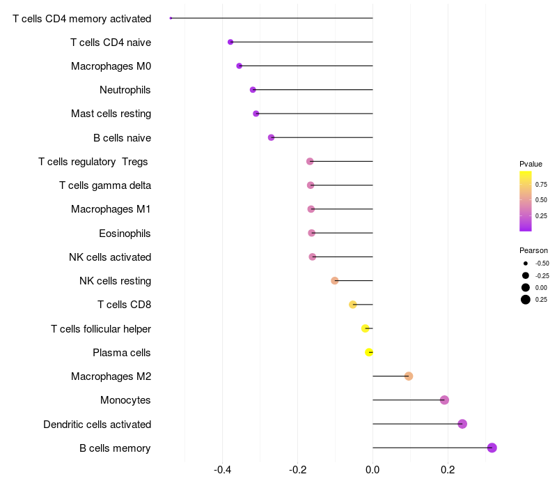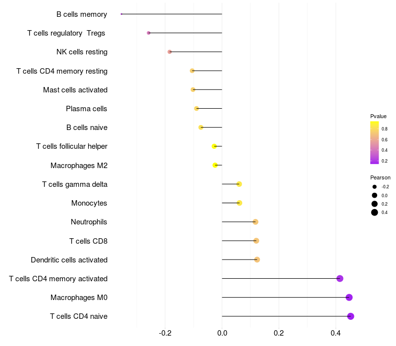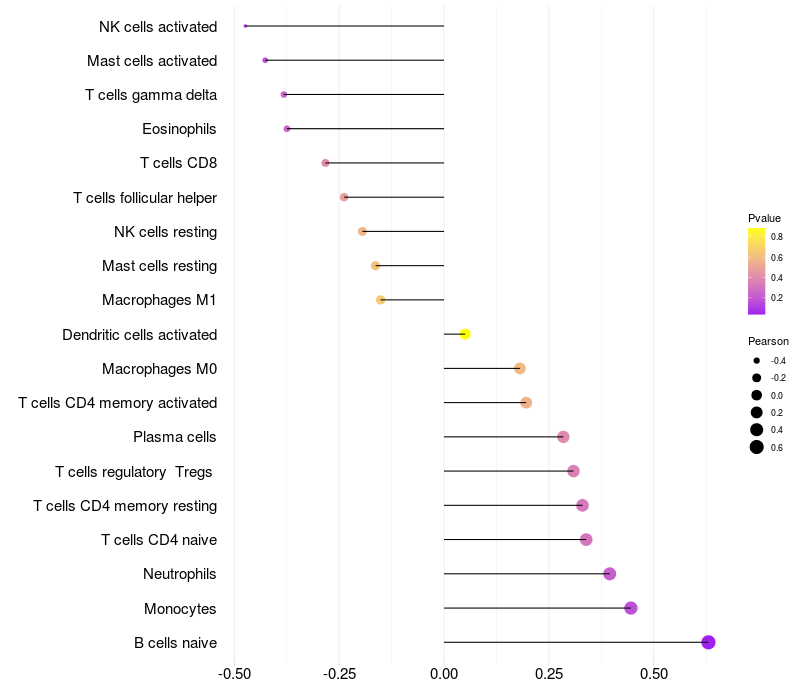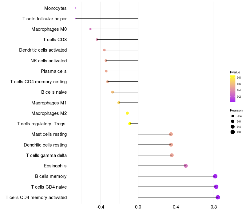 Lollipop of SPSB4 expression and immune infiltrating cell level correlation result in EBV+ samples