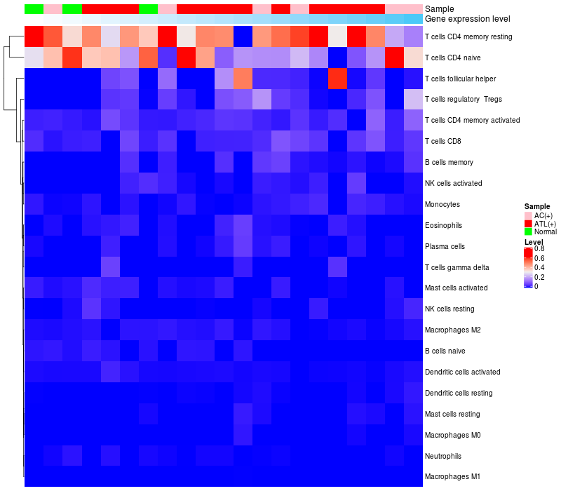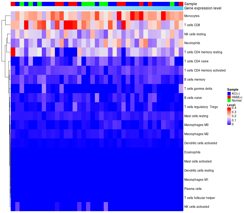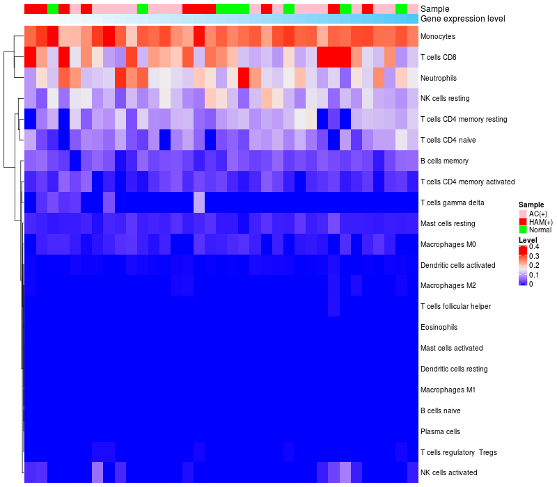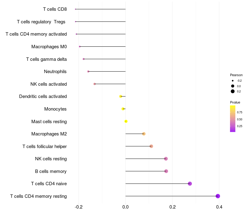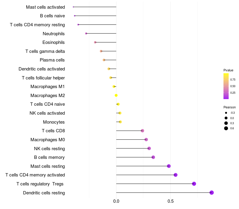 Relationship between gene expression and immune infiltrating cell level