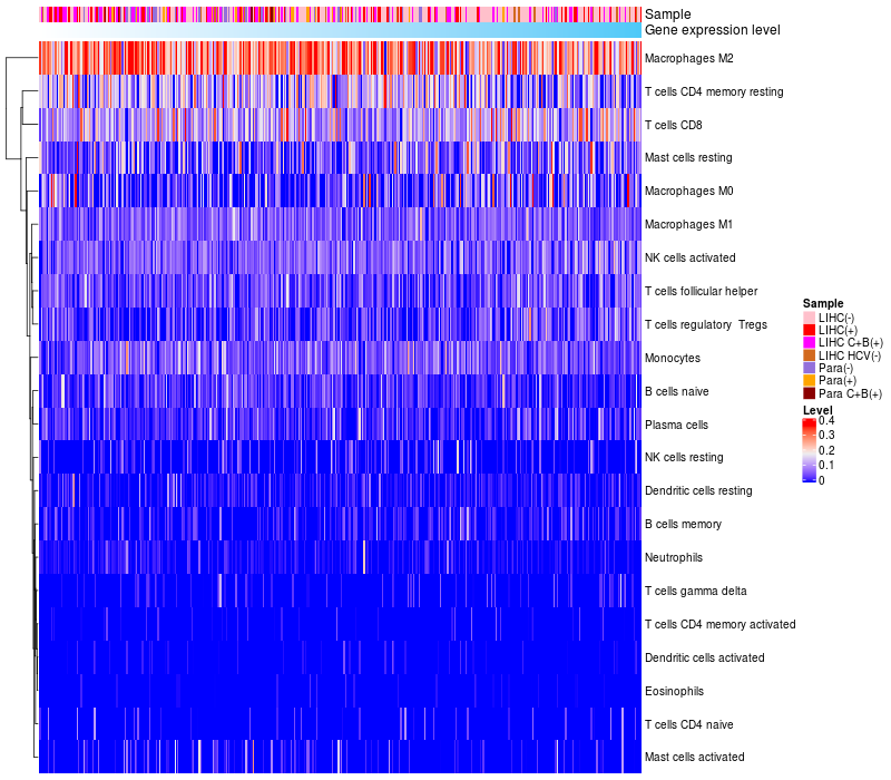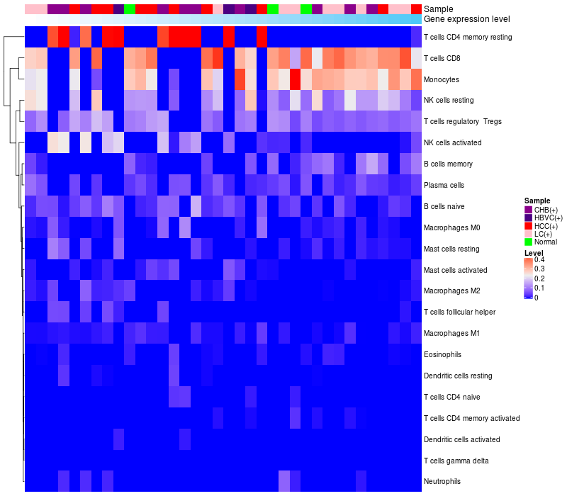 Relationship between gene expression and immune infiltrating cell level