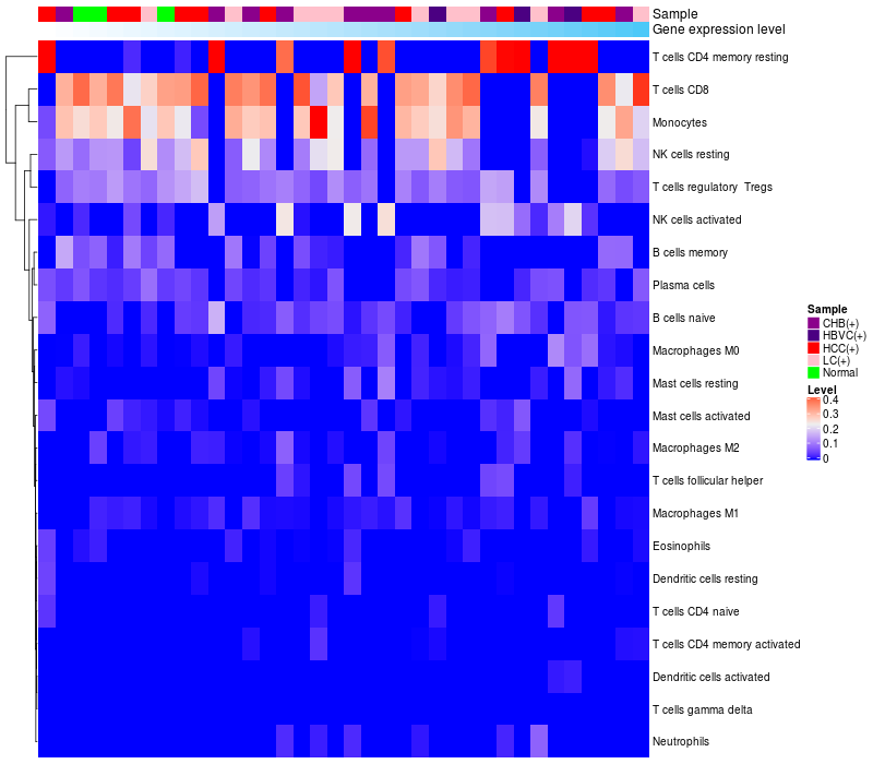 Relationship between gene expression and immune infiltrating cell level