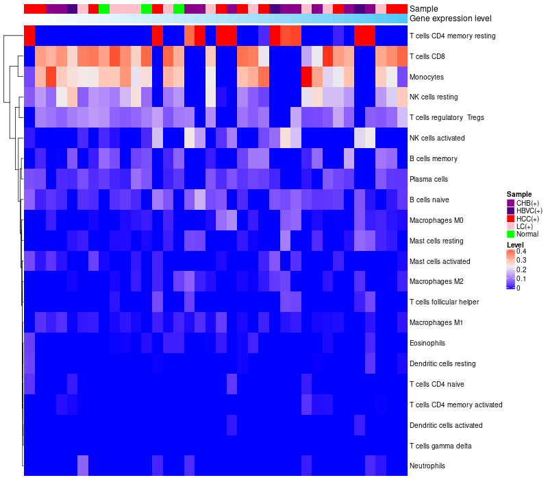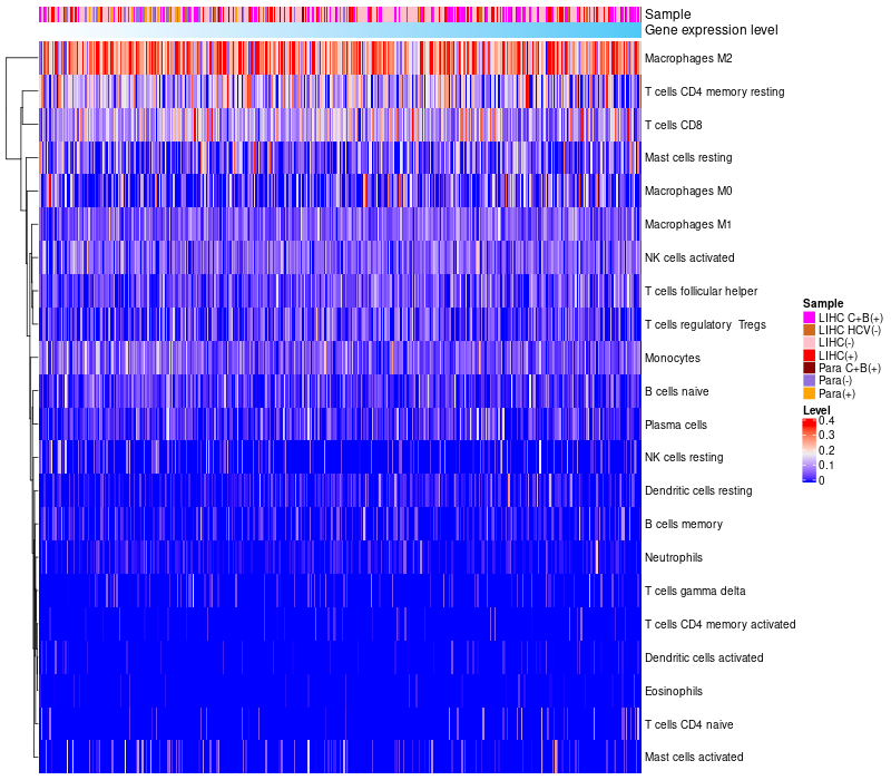 Liver hepatocellular carcinoma HCV (HBV+)(86), Liver hepatocellular carcinoma HCV (HBV-)(19), Liver hepatocellular carcinoma (HBV+)(209), Liver hepatocellular carcinoma (HBV+)(60), Paracancerous HCV (HBV+)(4), Paracancerous (HBV-)(28), Paracancerous (HBV+)(18) |