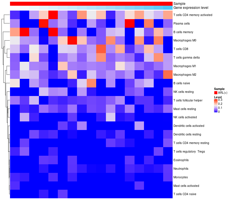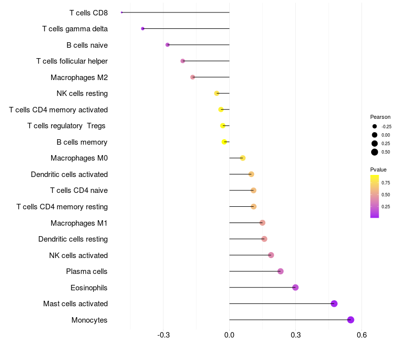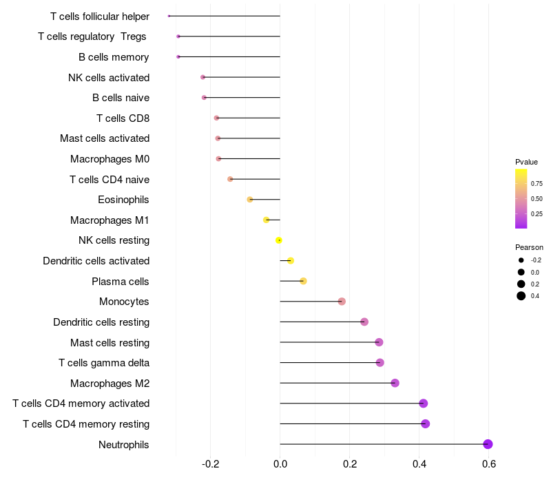 Relationship between gene expression and immune infiltrating cell level