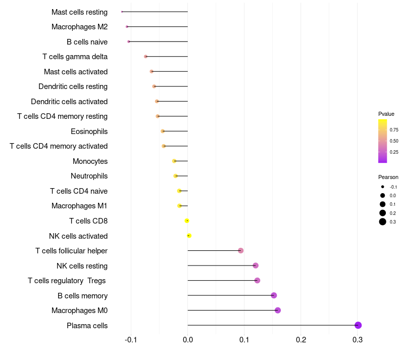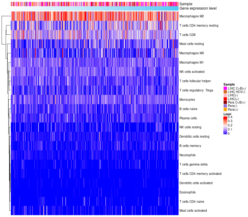 Relationship between gene expression and immune infiltrating cell level