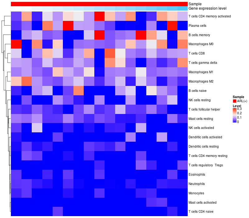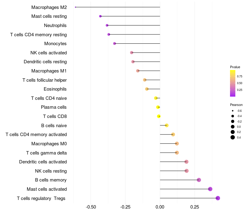 Relationship between gene expression and immune infiltrating cell level
