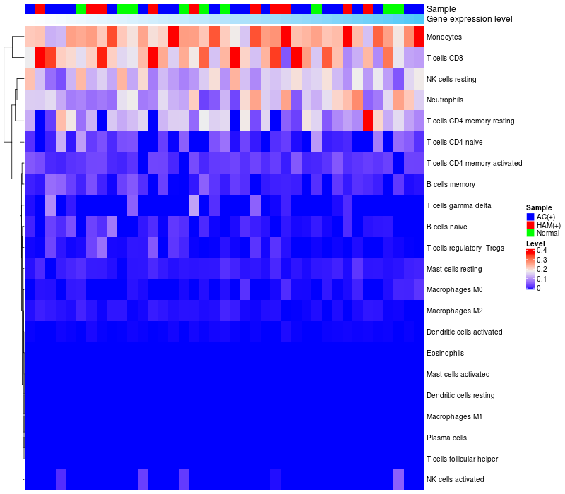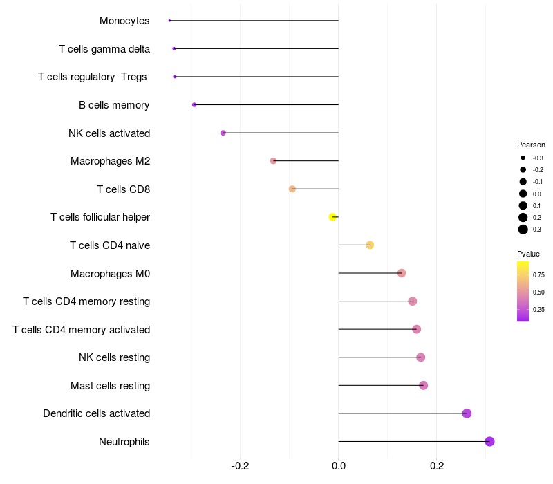 Relationship between gene expression and immune infiltrating cell level