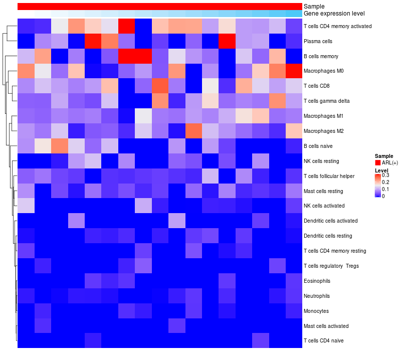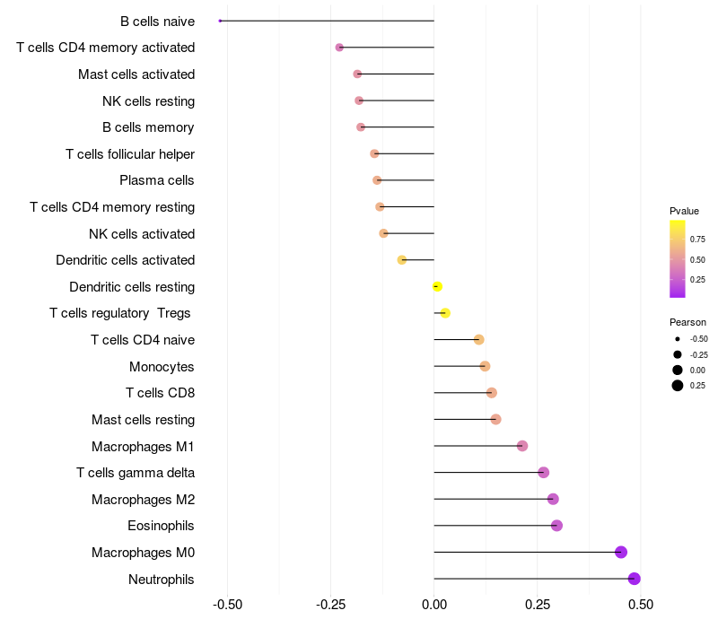 Relationship between gene expression and immune infiltrating cell level
