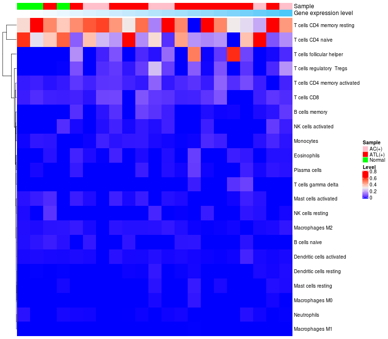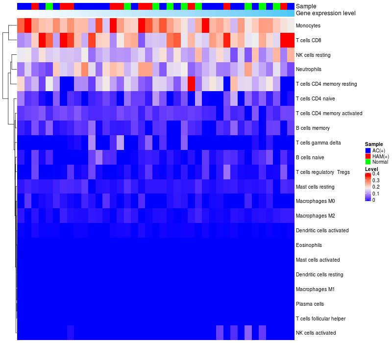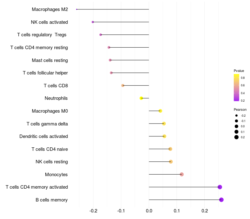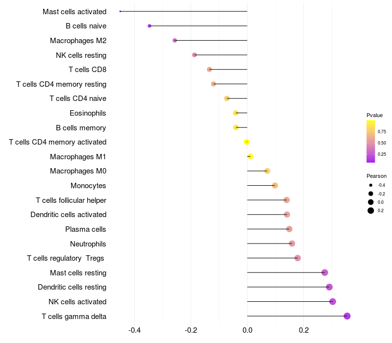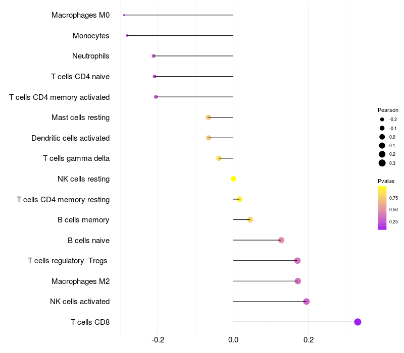 Lollipop of STAC3 expression and immune infiltrating cell level correlation result in HTLV1+ samples